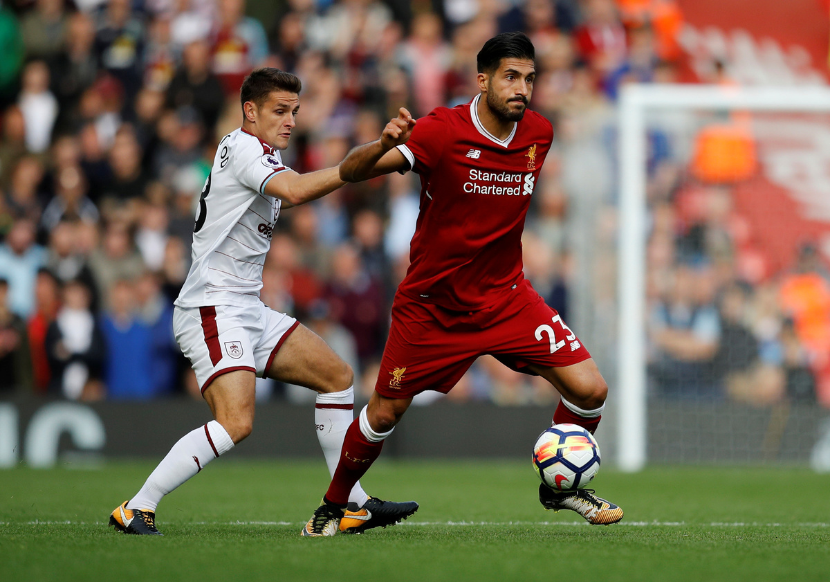 Soccer Football - Premier League - Liverpool vs Burnley - Anfield, Liverpool, Britain - September 16, 2017 Liverpool's Georginio Wijnaldum in action with Burnley's Robbie Brady Action Images via Reuters/Jason Cairnduff