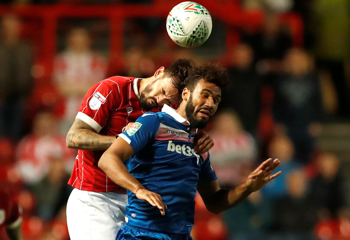 Soccer Football - Carabao Cup Third Round - Bristol City vs Stoke City - Ashton Gate Stadium, Bristol, Britain - September 19, 2017 Bristol City's Marlon Pack in action with Stoke City's Eric Maxim Choupo-Moting Action Images via Reuters/Andrew Boyers