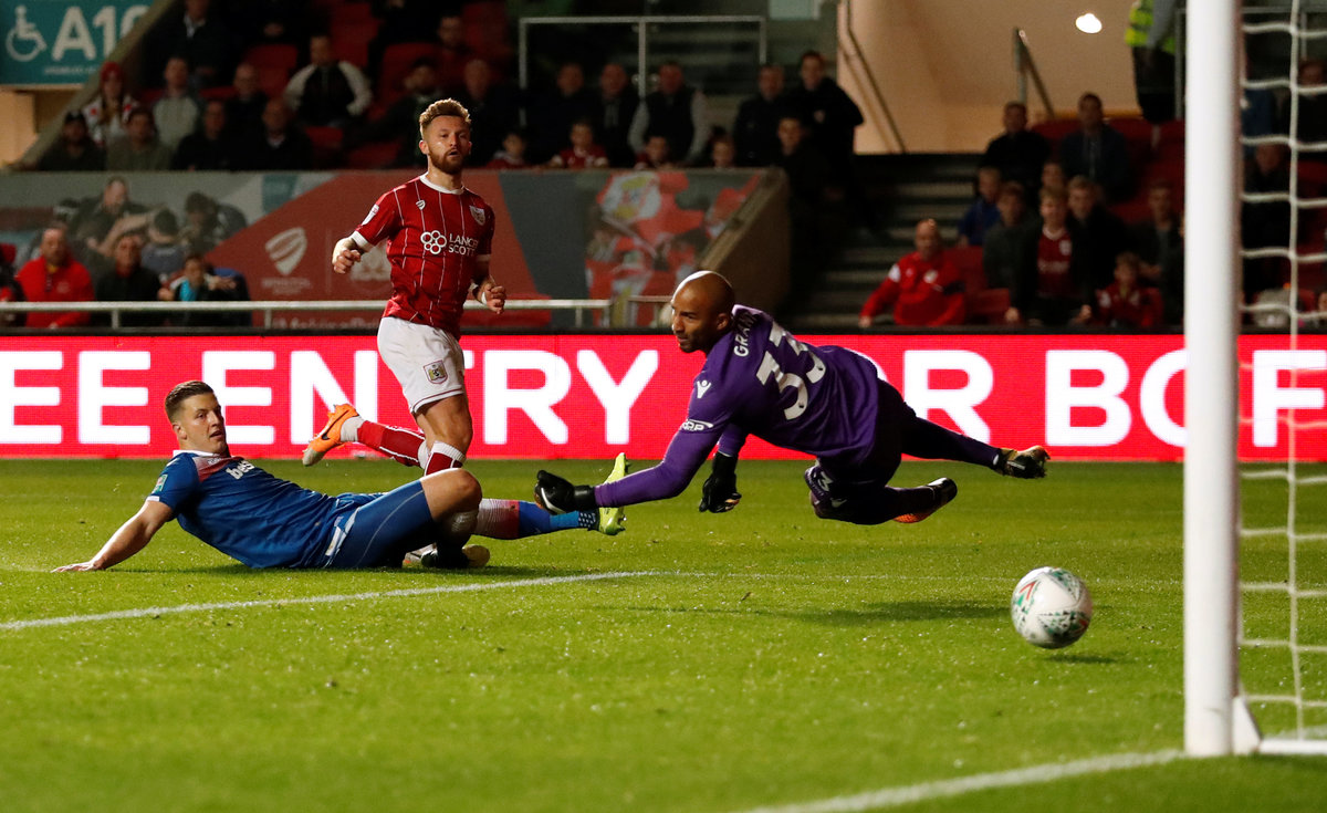 Soccer Football - Carabao Cup Third Round - Bristol City vs Stoke City - Ashton Gate Stadium, Bristol, Britain - September 19, 2017 Bristol City's Matt Taylor scores their second goal Action Images via Reuters/Andrew Boyers