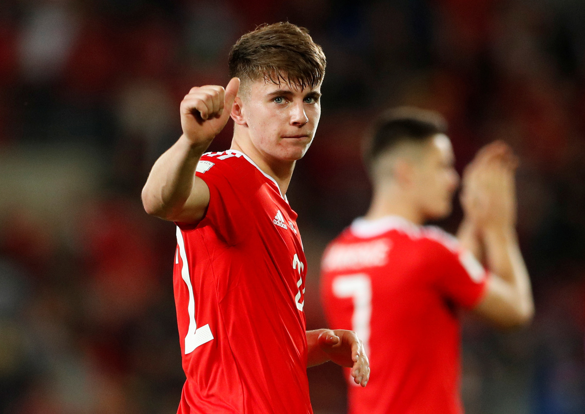 The 17-year-old, who scored on his international debut to give Wales a World Cup qualifying win over Austria this month, remained with Liverpool's under-19 squad while the 20-man senior squad prepared to fly to Russia on Monday.