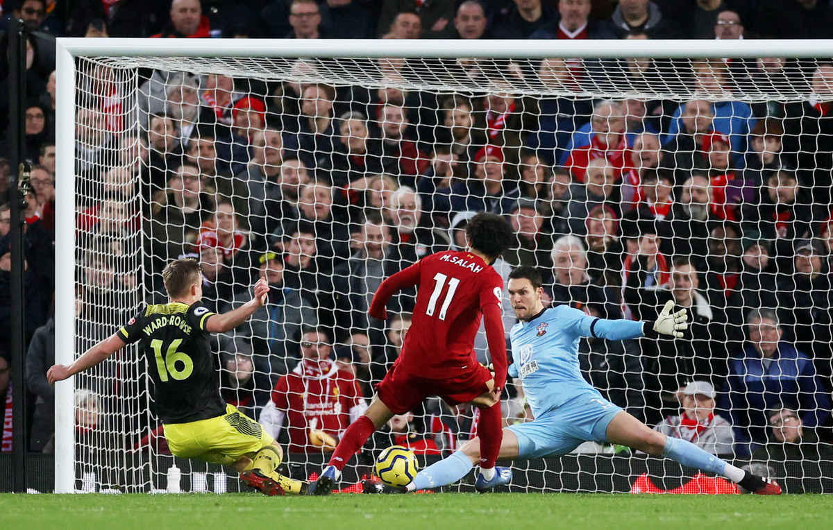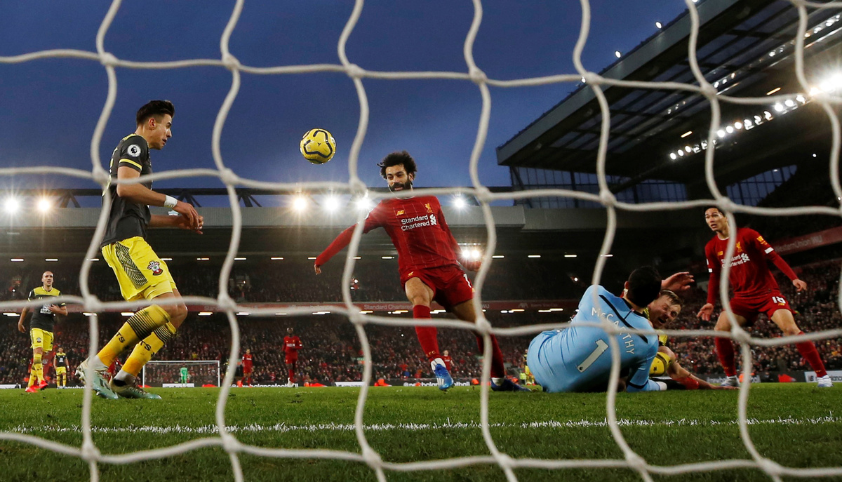 Premier League leaders Liverpool opened up a 22-point gap at the top of the table after second-half goals from Alex Oxlade-Chamberlain, Jordan Henderson and Mohamed Salah with a brace gave them a 4-0 win over Southampton at Anfield on Saturday.