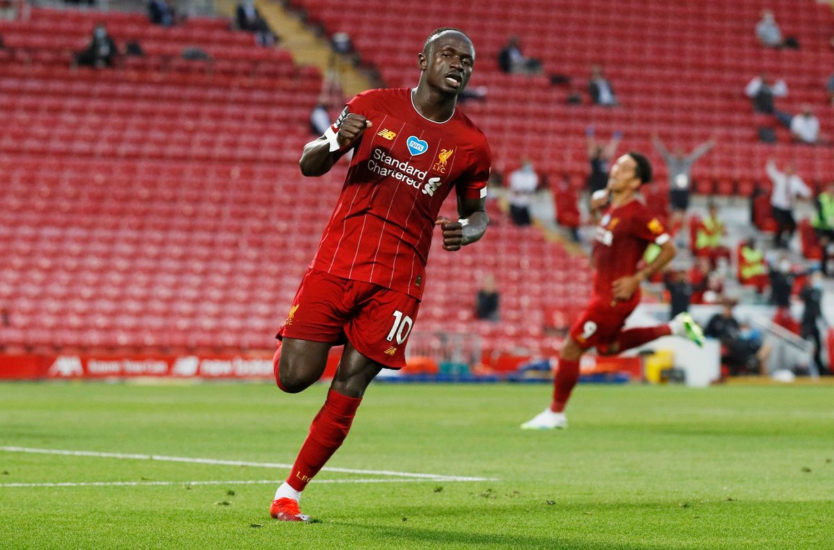 Soccer Football - Premier League - Liverpool v Crystal Palace - Anfield, Liverpool, Britain - June 24, 2020 Liverpool's Sadio Mane celebrates scoring their fourth goal, as play resumes behind closed doors following the outbreak of the coronavirus disease (COVID-19) REUTERS / Phil Noble / Pool