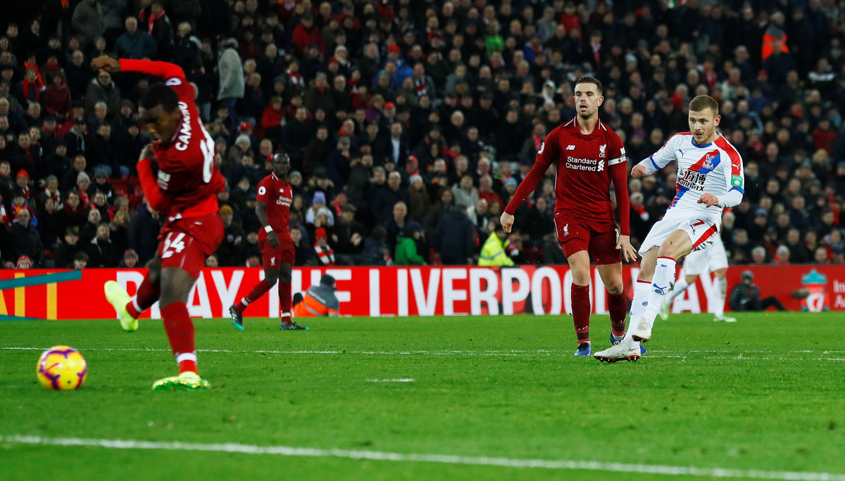 Palace, the last team to win at Anfield in the league back in April, 2017, took a shock 34th minute lead, against the run of play, when Andros Townsend slotted home a fine pull-back from Wilfried Zaha.