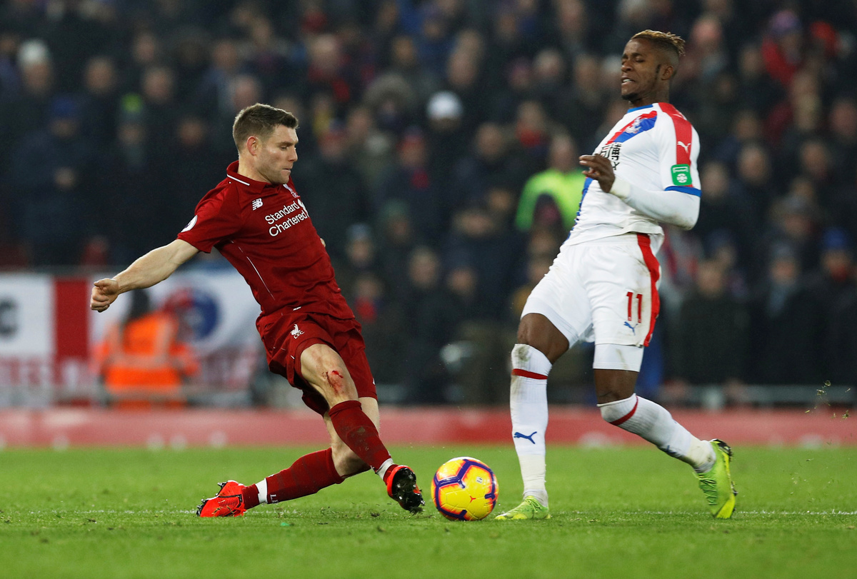 Milner was sent off in the 89th for a second yellow card after a late challenge on Zaha before Mane added the fourth for the hosts with a solo strike in stoppage time.
