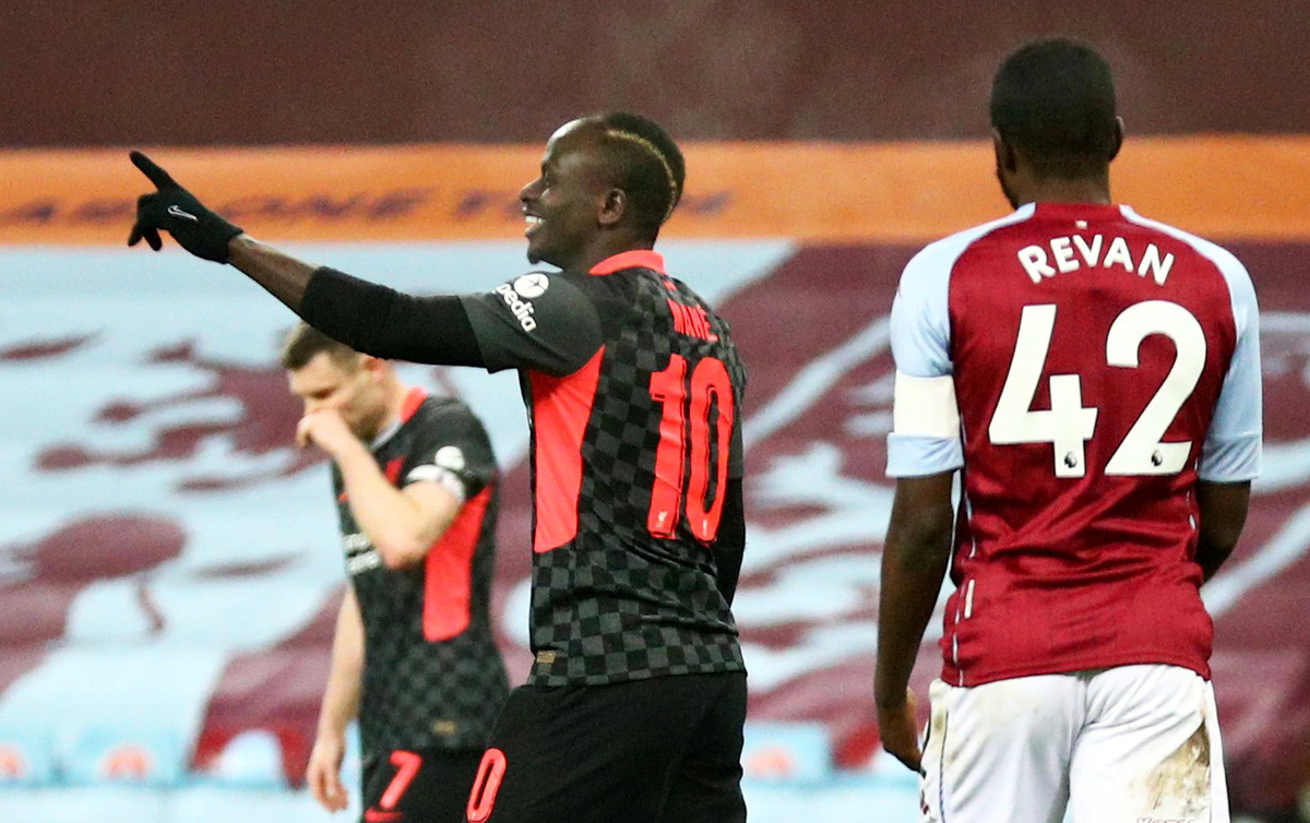 Sadio Mane scored twice for the English champions while Georginio Wijnaldum and Mohamed Salah added one each to cancel out a fine goal by Villa's 17-year old striker Louie Barry, who netted on his senior debut for the Midlands side.