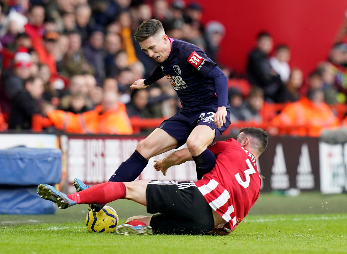 FILE PHOTO: Soccer Football - Premier League - Sheffield United v AFC Bournemouth - Bramall Lane, Sheffield, Britain - February 9, 2020 Bournemouth's Harry Wilson in action with Sheffield United's Enda Stevens REUTERS/Andrew Yates EDITORIAL USE ONLY. No use with unauthorized audio, video, data, fixture lists, club/league logos or "live" services. Online in-match use limited to 75 images, no video emulation. No use in betting, games or single club/league/player publications. Please contact your account representative for further details/File Photo