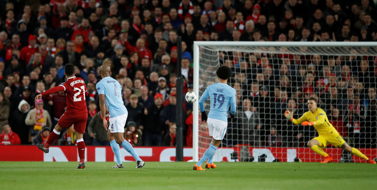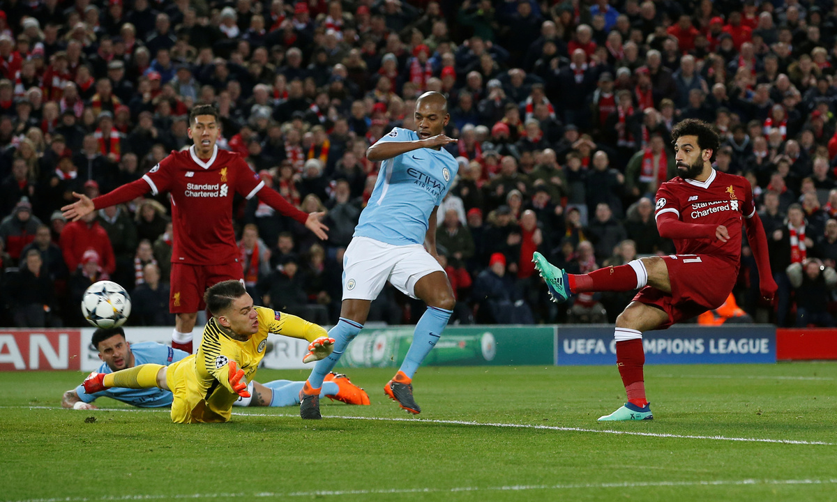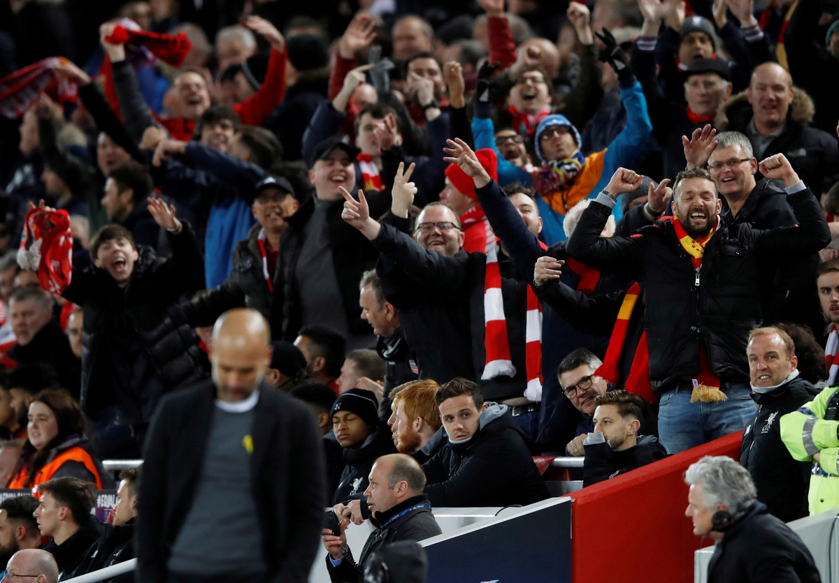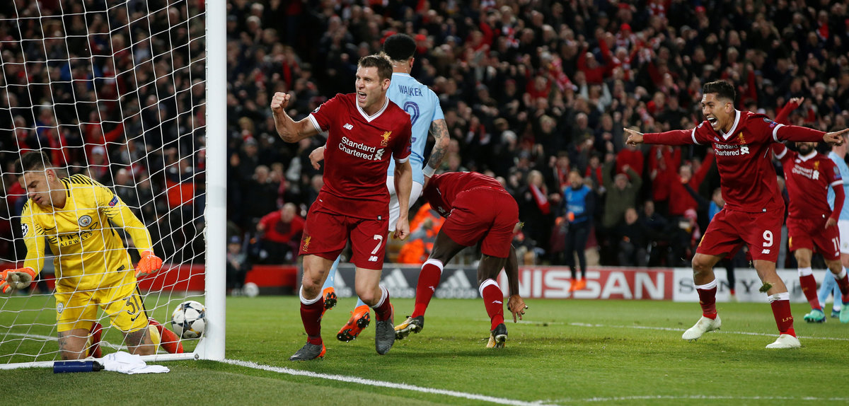 LIVERPOOL, England (Reuters) - Liverpool ripped apart Manchester City with three goals inside the opening 31 minutes as they won their Champions League quarter-final, first leg tie 3-0 on Wednesday.