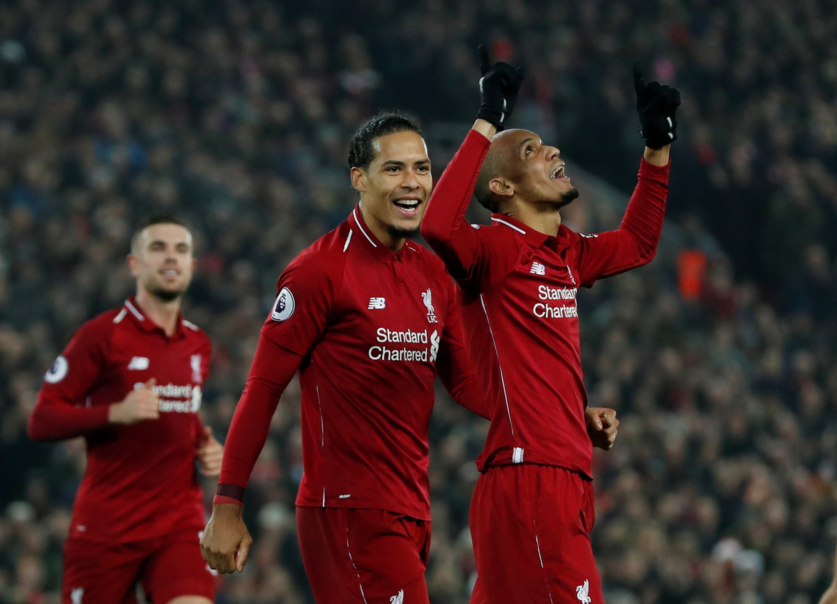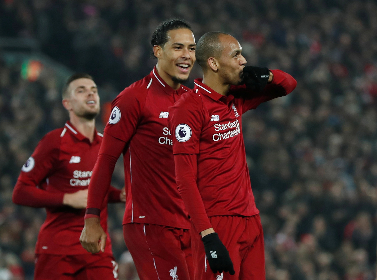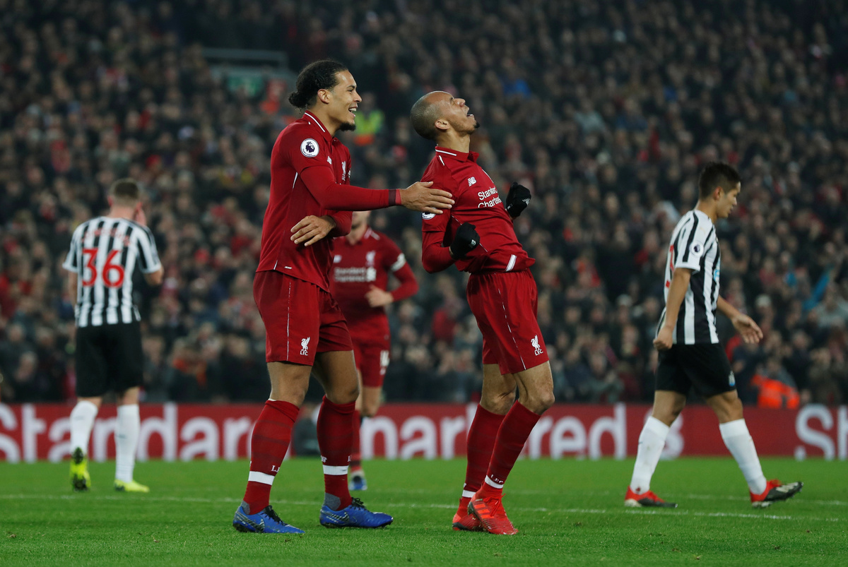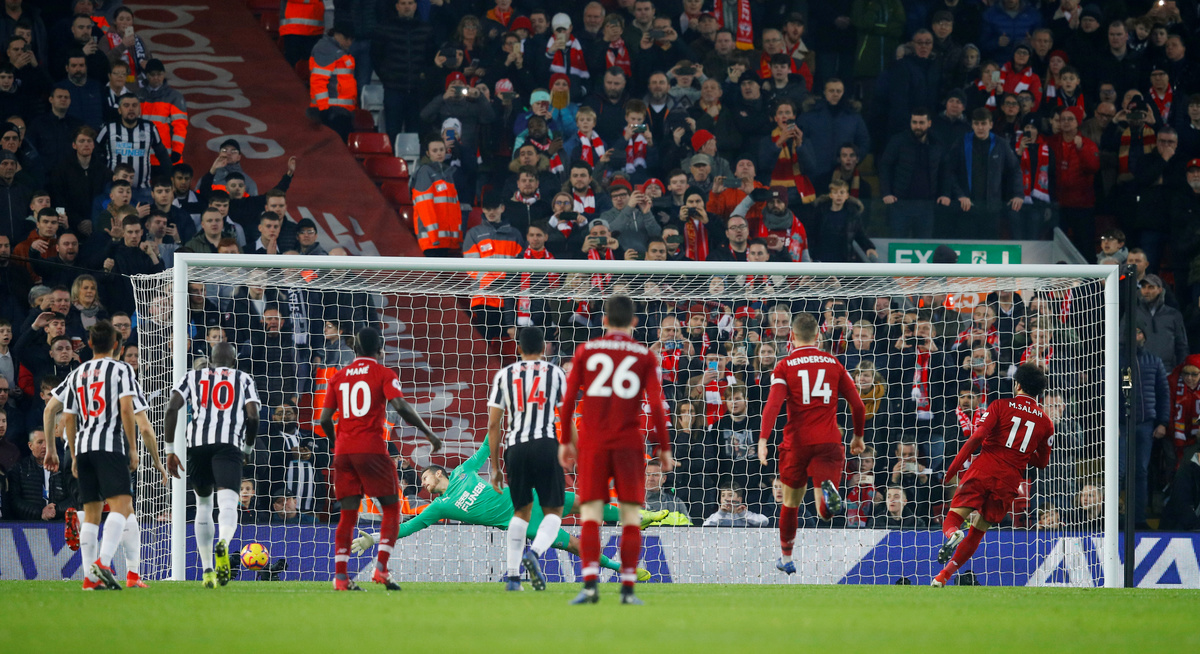 Soccer Football - Premier League - Liverpool v Newcastle United - Anfield, Liverpool, Britain - December 26, 2018 Liverpool's Mohamed Salah scores their second goal from the penalty spot.REUTERS/Phil NobleSoccer Football - Premier League - Liverpool v Newcastle United - Anfield, Liverpool, Britain - December 26, 2018 Liverpool's Virgil van Dijk and Dejan Lovren gesture REUTERS/Phil NobleSoccer Football - Premier League - Liverpool v Newcastle United - Anfield, Liverpool, Britain - December 26, 2018 Liverpool's Mohamed Salah celebrates scoring their second goal Action Images via Reuters/Lee Smith Soccer Football - Premier League - Liverpool v Newcastle United - Anfield, Liverpool, Britain - December 26, 2018 Liverpool's Fabinho celebrates scoring their fourth goal with Virgil van Dijk Action Images via Reuters/Lee SmithSoccer Football - Premier League - Liverpool v Newcastle United - Anfield, Liverpool, Britain - December 26, 2018 Liverpool's Xherdan Shaqiri in action with Newcastle United's Matt Ritchie REUTERS/Phil Noble Soccer Football - Premier League - Liverpool v Newcastle United - Anfield, Liverpool, Britain - December 26, 2018 Liverpool's Fabinho celebrates scoring their fourth goal with Virgil van Dijk and team mates Action Images via Reuters/Lee Smith Soccer Football - Premier League - Liverpool v Newcastle United - Anfield, Liverpool, Britain - December 26, 2018 Liverpool's Xherdan Shaqiri in action with Newcastle United's Mohamed Diame Action Images via Reuters/Lee SmithSoccer Football - Premier League - Liverpool v Newcastle United - Anfield, Liverpool, Britain - December 26, 2018 Liverpool's Fabinho celebrates scoring their fourth goal with Virgil van Dijk Action Images via Reuters/Lee SmithSoccer Football - Premier League - Liverpool v Newcastle United - Anfield, Liverpool, Britain - December 26, 2018 Newcastle United's DeAndre Yedlin in action with Liverpool's Nathaniel Clyne REUTERS/Phil Noble