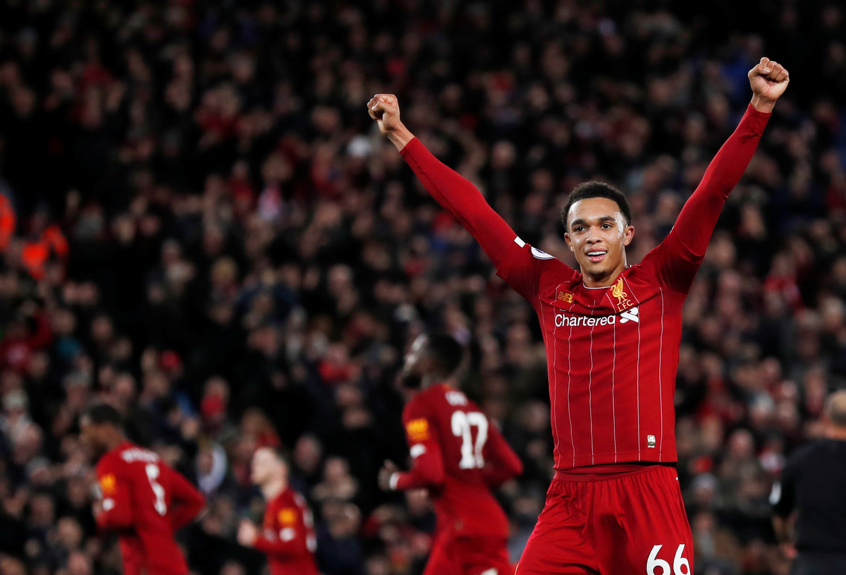 LIVERPOOL, England (Reuters) - Liverpool delivered a first-half masterclass to humiliate Everton at Anfield on Wednesday, surging into a 4-2 halftime lead and adding a late fifth to maintain their charge towards a first league title in 30 years.