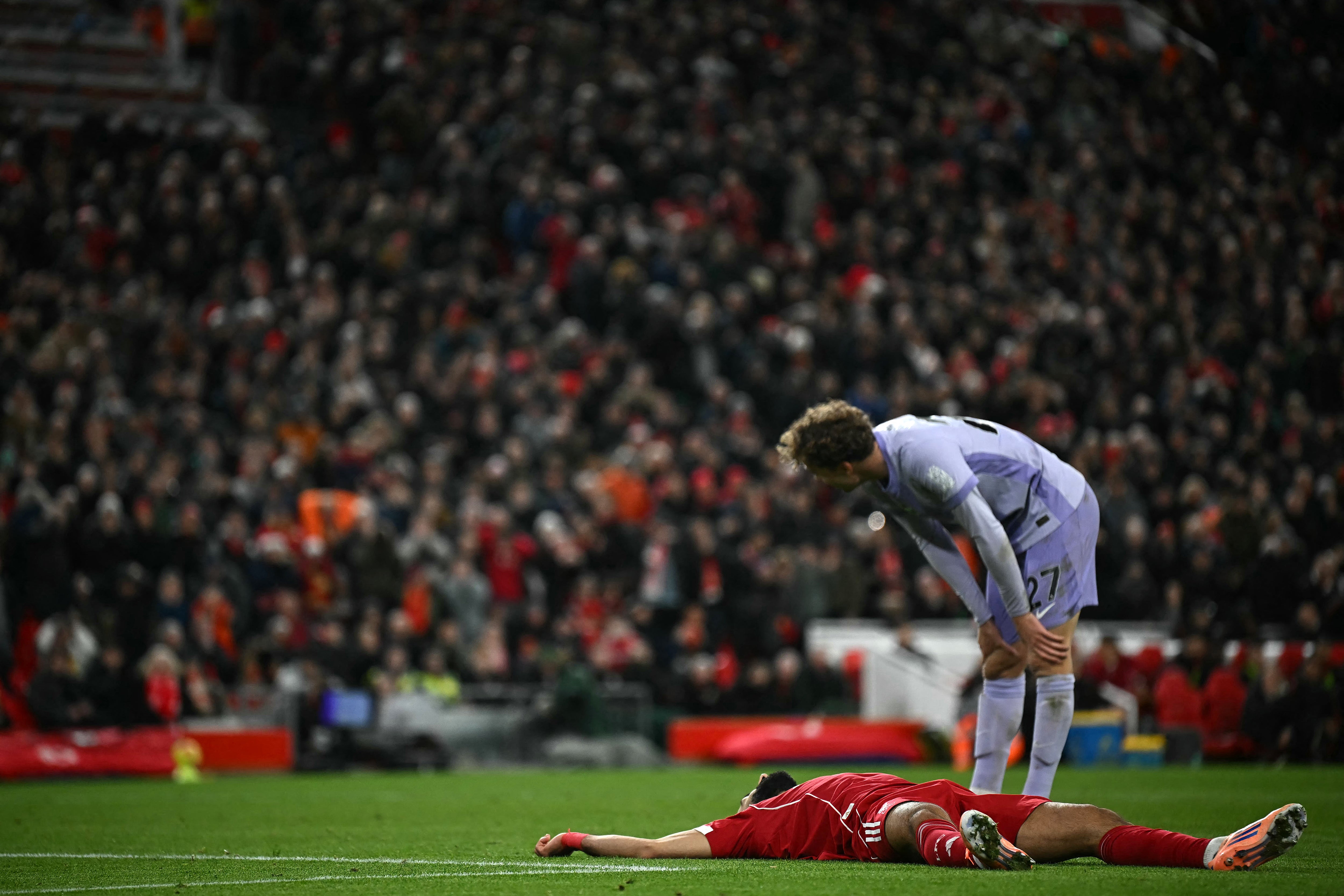 The concern for Liverpool is that Dominik Szoboszlai has stayed down.