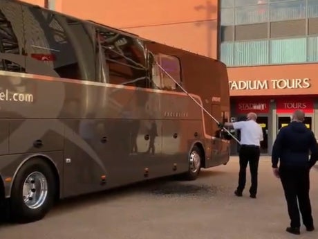 A spokesperson for Liverpool said in response to the incident: “We condemn unequivocally the actions that led to Real Madrid’s team bus being damaged during its arrival to Anfield this evening.