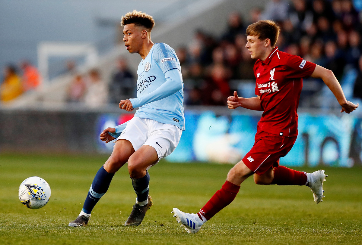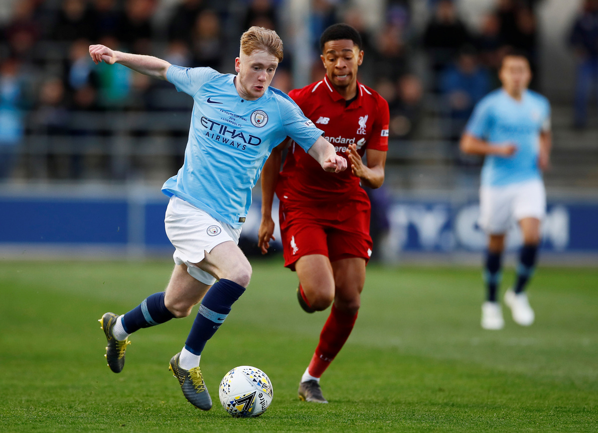 Soccer Football - FA Youth Cup Final - Manchester City v Liverpool - The Academy Stadium, Manchester, Britain - April 25, 2019 Manchester City's Thomas Doyle in action with Liverpool's Elijah Dixon-Bonner Action Images via Reuters/Jason CairnduffSoccer Football - FA Youth Cup Final - Manchester City v Liverpool - The Academy Stadium, Manchester, Britain - April 25, 2019 Manchester City's Felix Nmecha in action with Liverpool's Leighton Clarkson Action Images via Reuters/Jason Cairnduff