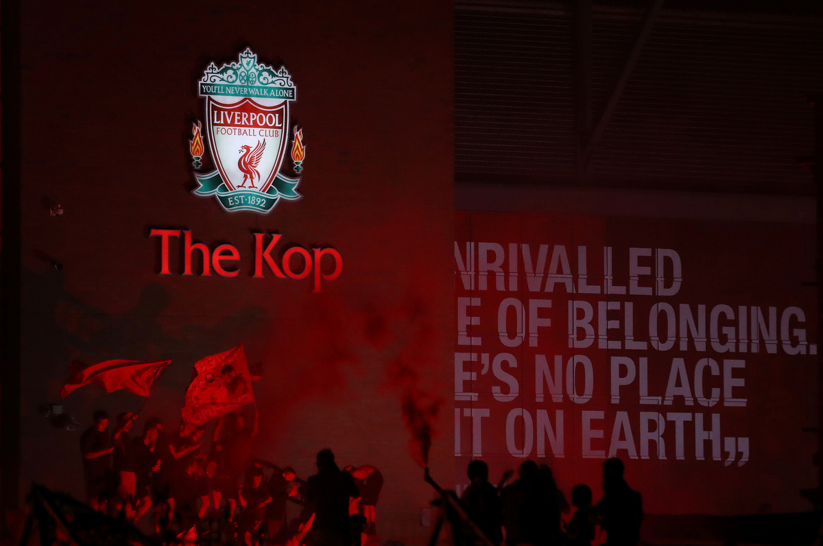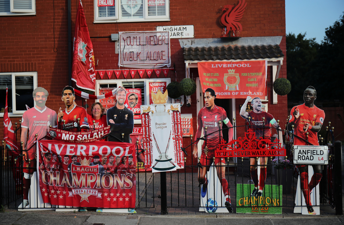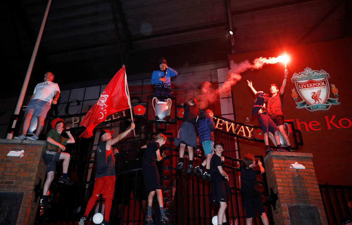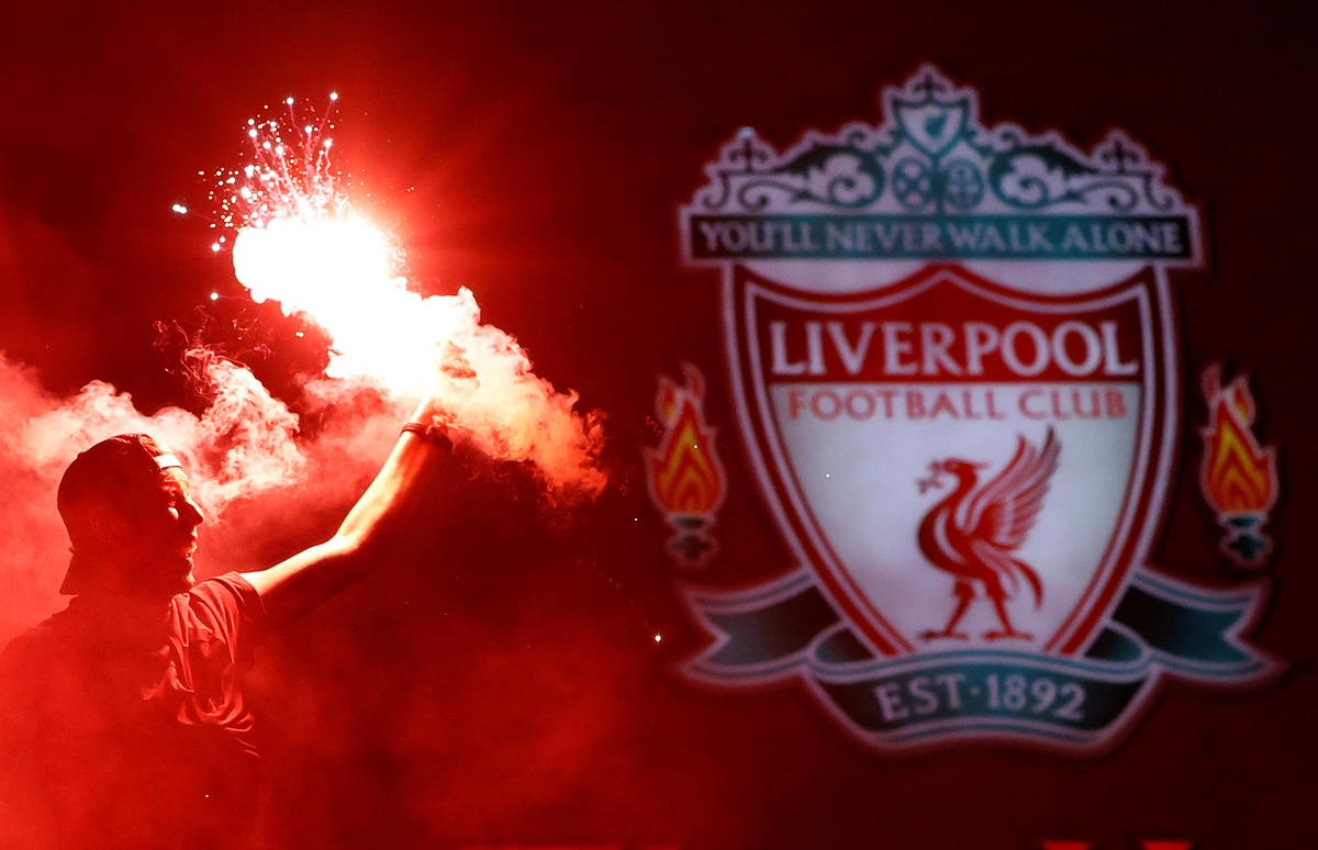 Soccer Football - Premier League - Liverpool could win Premier League if Manchester city drop points against Chelsea - Liverpool, Britain - June 25, 2020 Liverpool fans celebrate with flares outside Anfield after Chelsea scored their second goal in their match against Manchester City REUTERS/Phil Noble Soccer Football - Premier League - Liverpool fans celebrate winning the Premier League - Liverpool, Britain - June 25, 2020 Liverpool fans celebrate winning the Premier League outside Anfield with flares after Chelsea won their match against Manchester City Action Images via Reuters/Molly DarlingtonSoccer Football - Liverpool fans celebrate winning the Premier League - Liverpool, Britain - June 25, 2020 Liverpool fans celebrate winning the Premier League outside Anfield with flares after Chelsea won their match against Manchester City Action Images via Reuters/Carl RecineSoccer Football - Liverpool fans celebrate winning the Premier League - Liverpool, Britain - June 25, 2020 Liverpool fans celebrate winning the Premier League outside Anfield after Chelsea won their match against Manchester City Action Images via Reuters/Carl RecineSoccer Football - Premier League - Liverpool could win the Premier League if Manchester City drop points against Chelsea - Liverpool, Britain - June 25, 2020 Flags, scarves and cutout photos of Liverpool players, Liverpool manager Juergen Klopp and the Premier League trophy are seen outside the house of Liverpool fan Emily Farley Action Images via Reuters/Molly DarlingtonFILE PHOTO: Soccer Football - Champions League - Round of 16 Second Leg - Liverpool v Atletico Madrid - Anfield, Liverpool, Britain - March 11, 2020 Liverpool's Georginio Wijnaldum celebrates scoring their first goal Action Images via Reuters/Carl RecineFILE PHOTO: Soccer Football - Premier League - Liverpool v Crystal Palace - Anfield, Liverpool, Britain - June 24, 2020 Liverpool manager Juergen Klopp before the match, as play resumes behind closed doors following the outbreak of the coronavirus disease (COVID-19) Shaun Botterill/Pool via REUTERS