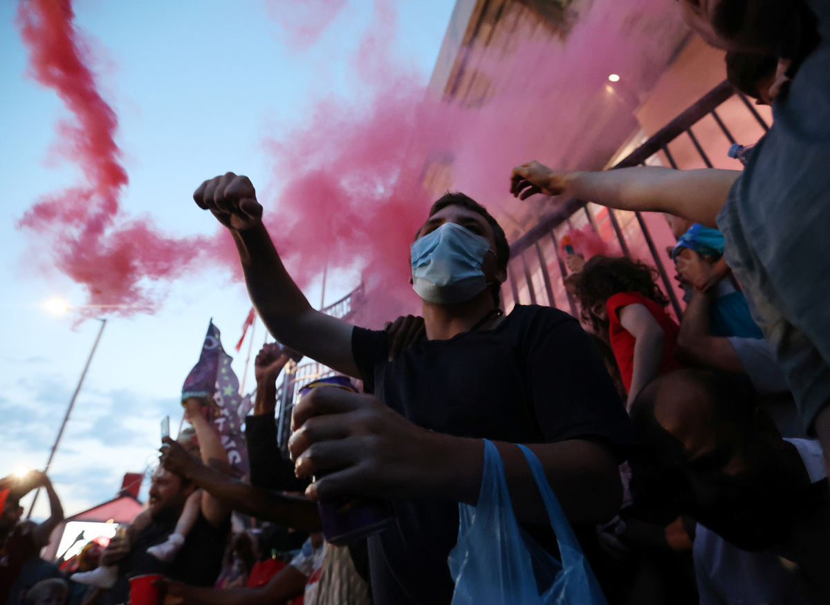 Soccer Football - Premier League - Liverpool fans celebrate winning the Premier League - Liverpool, Britain - June 25, 2020 Liverpool fans celebrate winning the Premier League with flares outside Anfield after Chelsea won their match against Manchester City Action Images via Reuters/Molly Darlington