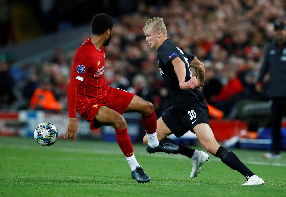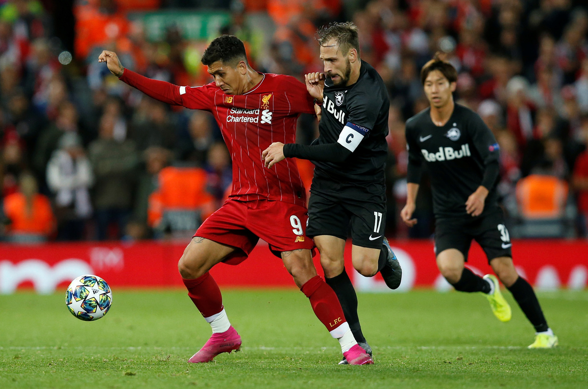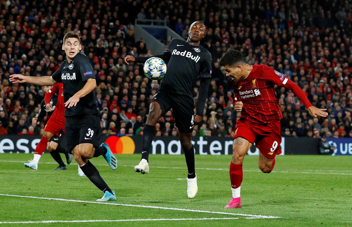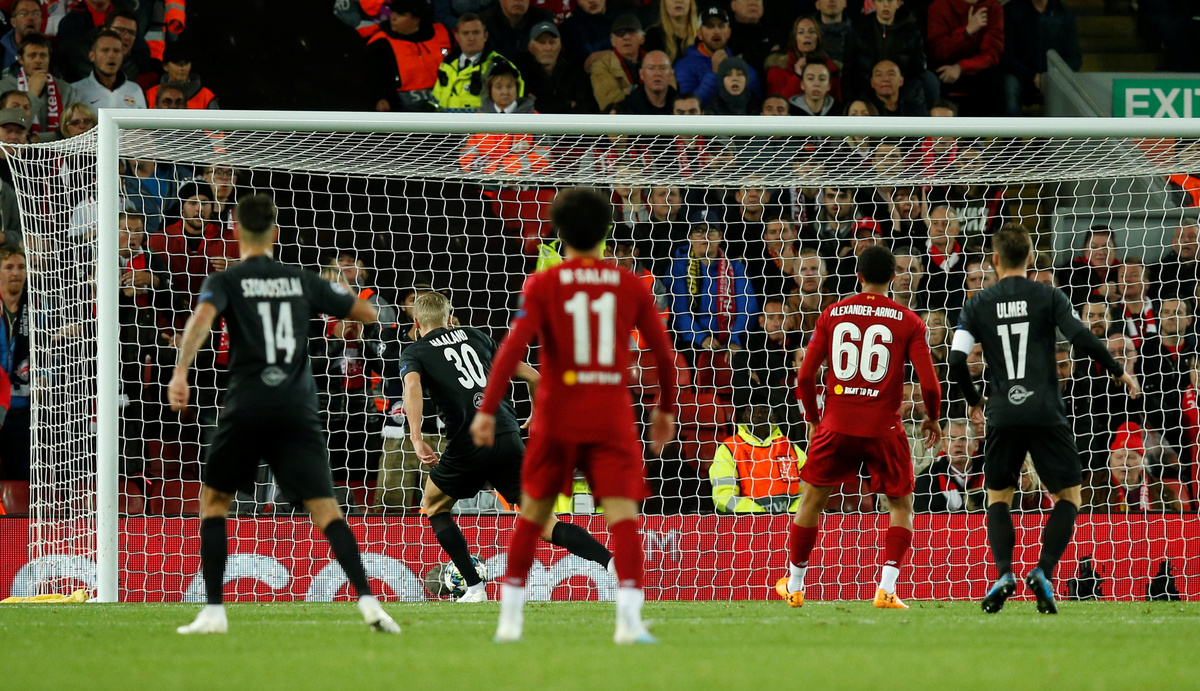 Soccer Football - Champions League - Group E - Liverpool v FC Salzburg - Anfield, Liverpool, Britain - October 2, 2019 Liverpool's Mohamed Salah shoots at goal Action Images via Reuters/Jason CairnduffSoccer Football - Champions League - Group E - Liverpool v FC Salzburg - Anfield, Liverpool, Britain - October 2, 2019 Liverpool's Roberto Firmino shoots at goal Action Images via Reuters/Jason CairnduffSoccer Football - Champions League - Group E - Liverpool v FC Salzburg - Anfield, Liverpool, Britain - October 2, 2019 Liverpool's Mohamed Salah scores their third goal past FC Salzburg's Cican Stankovic Action Images via Reuters/Jason CairnduffSoccer Football - Champions League - Group E - Liverpool v FC Salzburg - Anfield, Liverpool, Britain - October 2, 2019 FC Salzburg's Erling Braut Haaland celebrates scoring their third goal Action Images via Reuters/Jason CairnduffSoccer Football - Champions League - Group E - Liverpool v FC Salzburg - Anfield, Liverpool, Britain - October 2, 2019 FC Salzburg's Takumi Minamino scores their second goal REUTERS/Andrew YatesSoccer Football - Champions League - Group E - Liverpool v FC Salzburg - Anfield, Liverpool, Britain - October 2, 2019 FC Salzburg's Rasmus Kristensen in action with Liverpool's Divock Origi REUTERS/Andrew YatesSoccer Football - Champions League - Group E - Liverpool v FC Salzburg - Anfield, Liverpool, Britain - October 2, 2019 FC Salzburg's Andreas Ulmer in action with Liverpool's Roberto Firmino REUTERS/Andrew YatesSoccer Football - Champions League - Group E - Liverpool v FC Salzburg - Anfield, Liverpool, Britain - October 2, 2019 FC Salzburg's Erling Braut Haaland in action with Liverpool's Joe Gomez Action Images via Reuters/Jason CairnduffSoccer Football - Champions League - Group E - Liverpool v FC Salzburg - Anfield, Liverpool, Britain - October 2, 2019 FC Salzburg's Erling Braut Haaland scores their third goal Action Images via Reuters/Jason Cairnduff