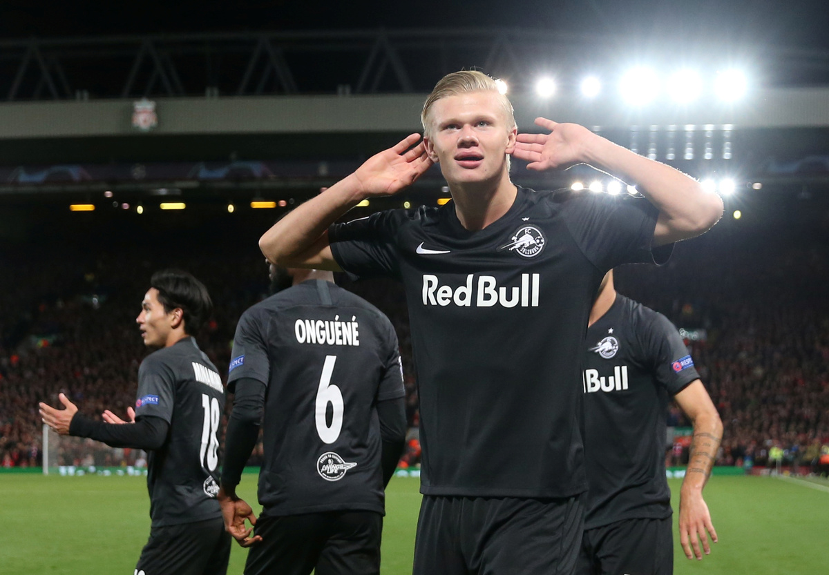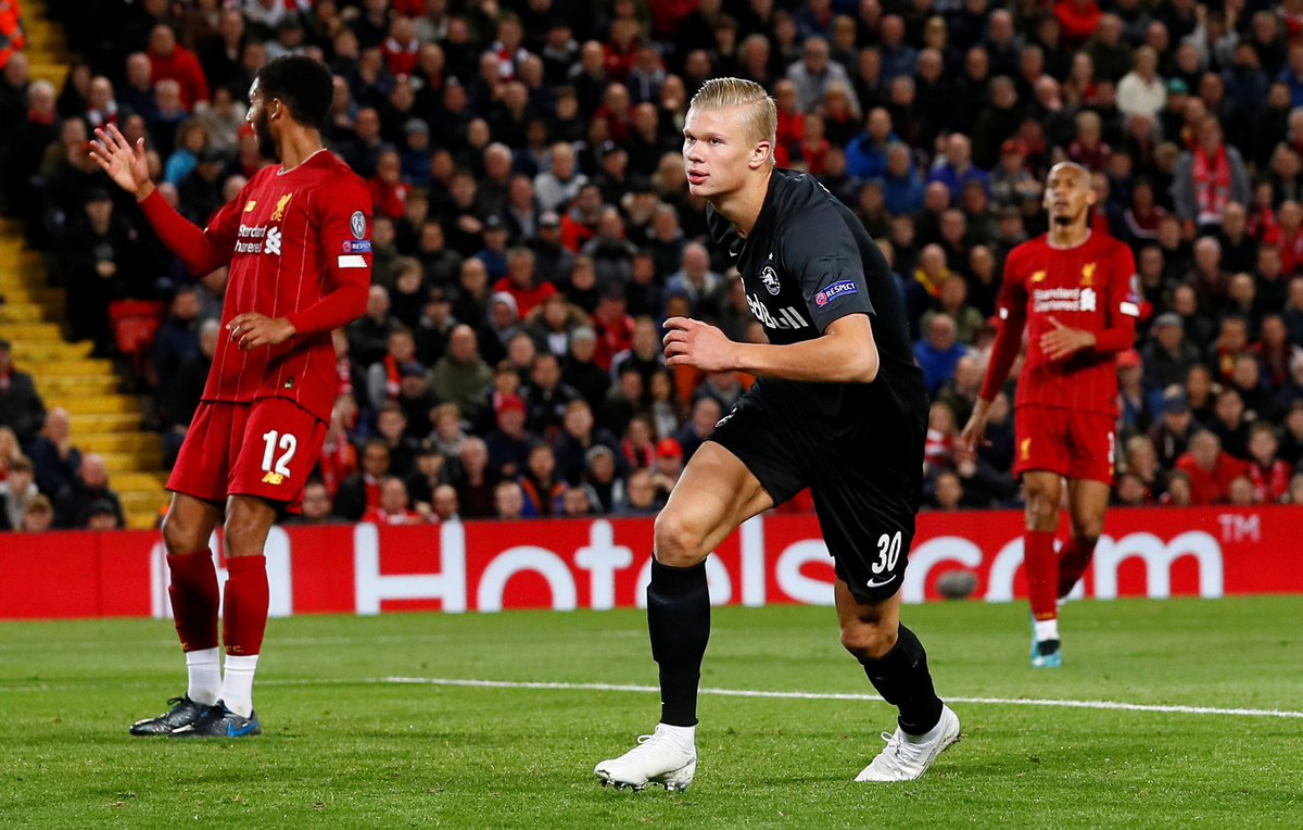Haaland had scored a hat-trick in the win over Genk and the tall striker had the extra satisfaction of matching his father, Alf-Inge, who scored for Leeds United at Anfield in a Premier League match 22 years ago.