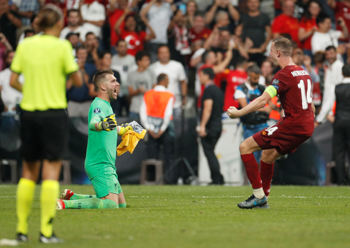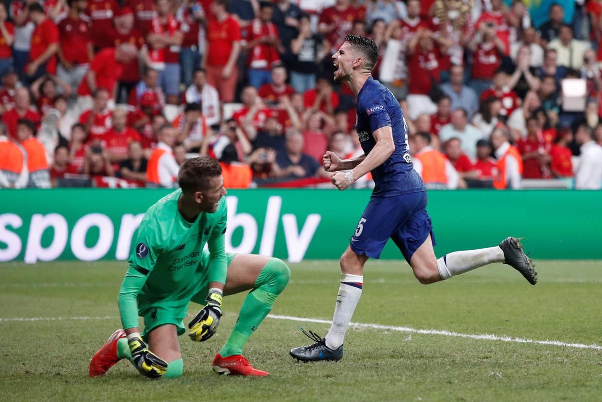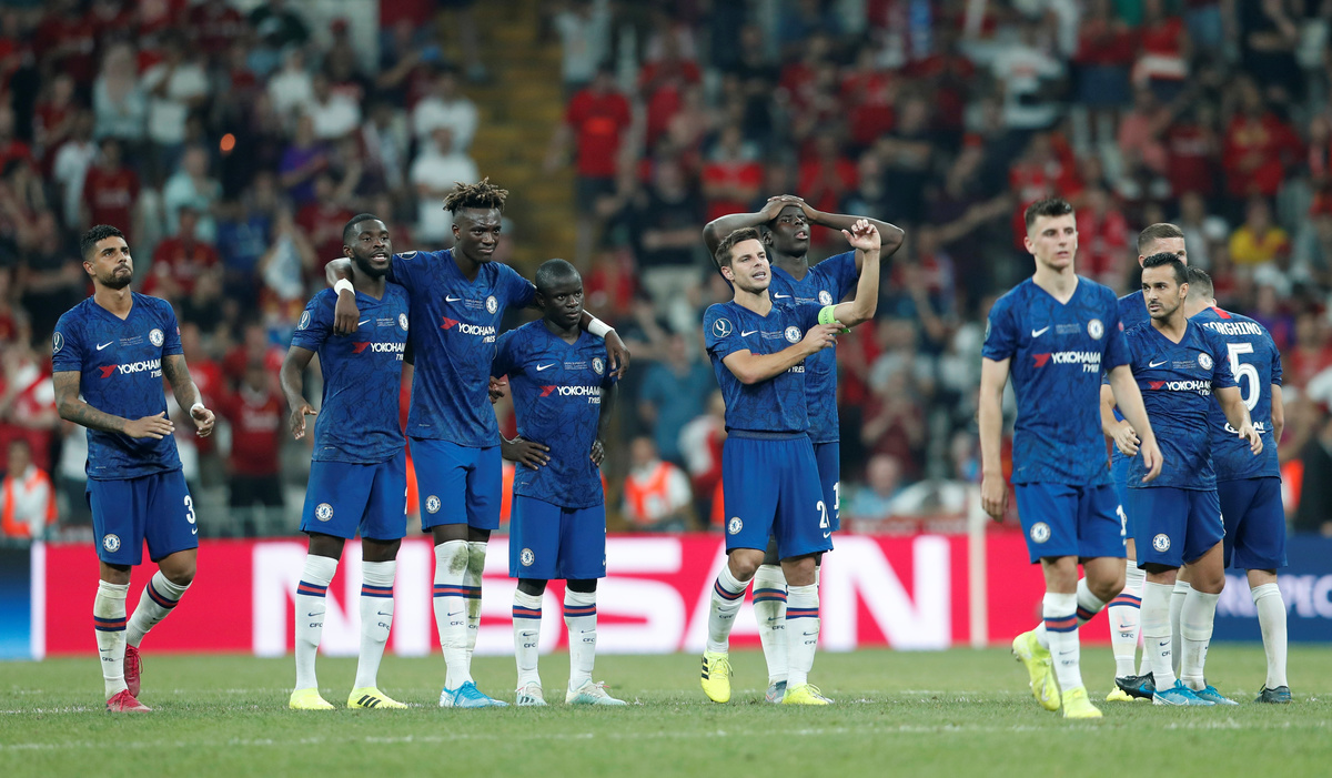 Soccer Football - UEFA Super Cup - Liverpool v Chelsea - Vodafone Arena, Istanbul, Turkey - August 14, 2019 Chelsea's Jorginho celebrates scoring their second goal as Liverpool's Adrian looks dejected Action Images via Reuters/John SibleySoccer Football - UEFA Super Cup - Liverpool v Chelsea - Vodafone Arena, Istanbul, Turkey - August 14, 2019 Liverpool's Adrian celebrates winning the UEFA Super Cup with Jordan Henderson after saving the decisive penalty in the penalty shootout taken by Chelsea's Tammy Abraham Action Images via Reuters/John SibleySoccer Football - UEFA Super Cup - Liverpool v Chelsea - Vodafone Arena, Istanbul, Turkey - August 14, 2019 Liverpool's Adrian, Joel Matip and team mates react as referee Stephanie Frappart awards a penalty to Chelsea REUTERS/Murad SezerSoccer Football - UEFA Super Cup - Liverpool v Chelsea - Vodafone Arena, Istanbul, Turkey - August 14, 2019 Liverpool's Fabinho and Mohamed Salah with team mates as they celebrate winning the UEFA Super Cup REUTERS/Murad SezerSoccer Football - UEFA Super Cup - Liverpool v Chelsea - Vodafone Arena, Istanbul, Turkey - August 14, 2019 Liverpool's Jordan Henderson lifts the trophy as he celebrates winning the UEFA Super Cup with team mates REUTERS/Murad SezerSoccer Football - UEFA Super Cup - Liverpool v Chelsea - Vodafone Arena, Istanbul, Turkey - August 14, 2019 Referee Stephanie Frappart as Liverpool's Jordan Henderson reacts after she awarded a penalty to Chelsea Action Images via Reuters/John SibleySoccer Football - UEFA Super Cup - Liverpool v Chelsea - Vodafone Arena, Istanbul, Turkey - August 14, 2019 Chelsea manager Frank Lampard and Cesar Azpilicueta look dejected after losing the match after a penalty shootout Action Images via Reuters/John SibleySoccer Football - UEFA Super Cup - Liverpool v Chelsea - Vodafone Arena, Istanbul, Turkey - August 14, 2019 Liverpool's Mohamed Salah with team mates as he celebrates winning the UEFA Super Cup with the trophy REUTERS/Murad SezerSoccer Football - UEFA Super Cup - Liverpool v Chelsea - Vodafone Arena, Istanbul, Turkey - August 14, 2019 Liverpool's Roberto Firmino celebrates scoring a penalty during the penalty shootout REUTERS/Murad SezerSoccer Football - UEFA Super Cup - Liverpool v Chelsea - Vodafone Arena, Istanbul, Turkey - August 14, 2019 Liverpool's players as they shake hands with UEFA president Aleksander Ceferin after the match REUTERS/Murad SezerSoccer Football - UEFA Super Cup - Liverpool v Chelsea - Vodafone Arena, Istanbul, Turkey - August 14, 2019 Chelsea's Jorginho scores their second goal from the penalty spot Action Images via Reuters/John SibleySoccer Football - UEFA Super Cup - Liverpool v Chelsea - Vodafone Arena, Istanbul, Turkey - August 14, 2019 Chelsea's Tammy Abraham misses a chance to score Action Images via Reuters/John SibleySoccer Football - UEFA Super Cup - Liverpool v Chelsea - Vodafone Arena, Istanbul, Turkey - August 14, 2019 Chelsea's Tammy Abraham misses a chance to score Action Images via Reuters/John SibleySoccer Football - UEFA Super Cup - Liverpool v Chelsea - Vodafone Arena, Istanbul, Turkey - August 14, 2019 Liverpool's Adrian celebrates winning the UEFA Super Cup with team mates after saving the decisive penalty in the penalty shootout taken by Chelsea's Tammy Abraham Action Images via Reuters/John Sibley