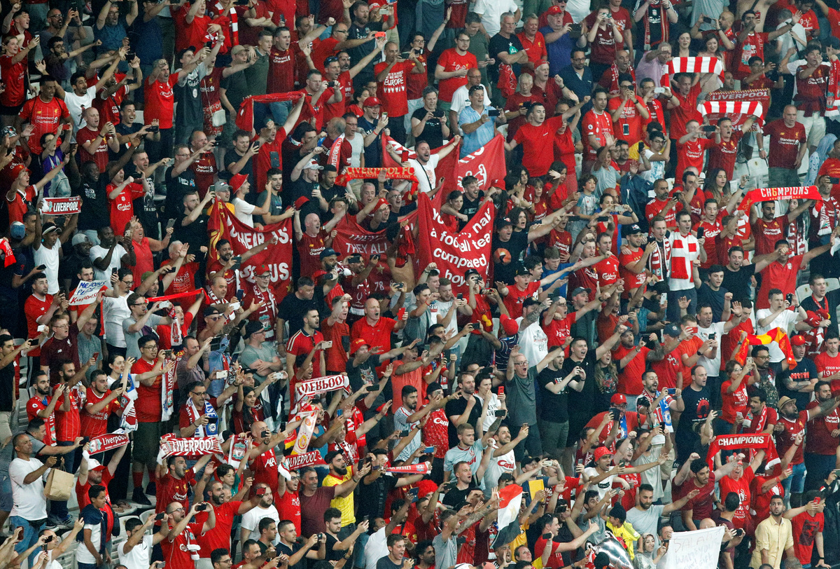 Soccer Football - UEFA Super Cup - Liverpool v Chelsea - Vodafone Arena, Istanbul, Turkey - August 14, 2019 Liverpool fans celebrate winning the UEFA Super Cup REUTERS/Kemal Aslan