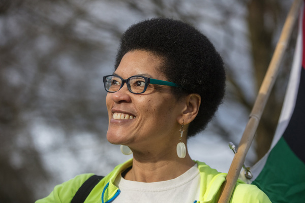 The walk, typically held during the more temperate months, usually starts at a local park where old and new participants gather around Davis, who usually carries an African flag and sometimes has green and white balloons.