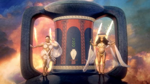 When two goddesses of this world and titans of music collaborate, you go with the theme. Which is exactly what we get in the new Tanu Muino-directed video for "Rumors," the new single from Cardi B and Lizzo. If you're a millennial, expect to get flashbacks to Hercules' muses, as the two glamazons twerk their way off of Greek pottery and through a celestial tableau.