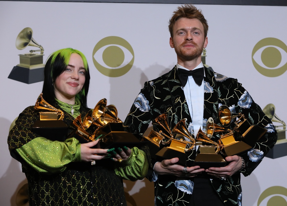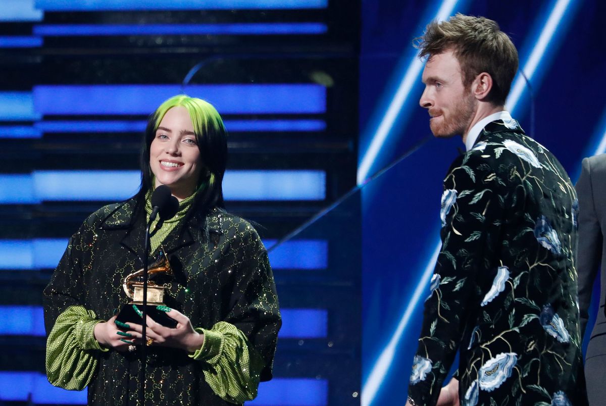 Eilish, distinguished by her green hair and baggy clothes, recorded the album with her brother Finneas in the bedroom of their Los Angeles home. Finneas also won the Grammy for non classical producer of the year.