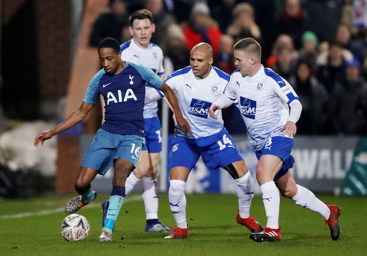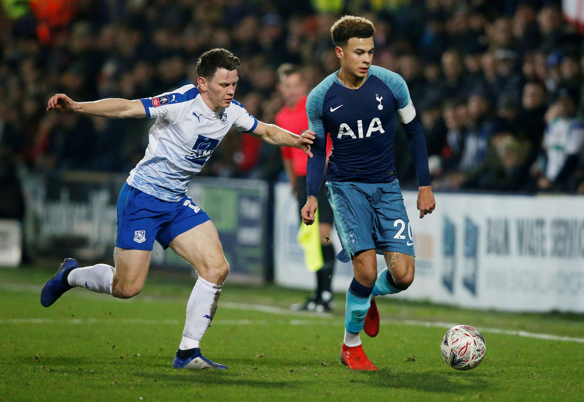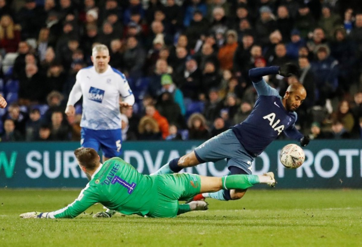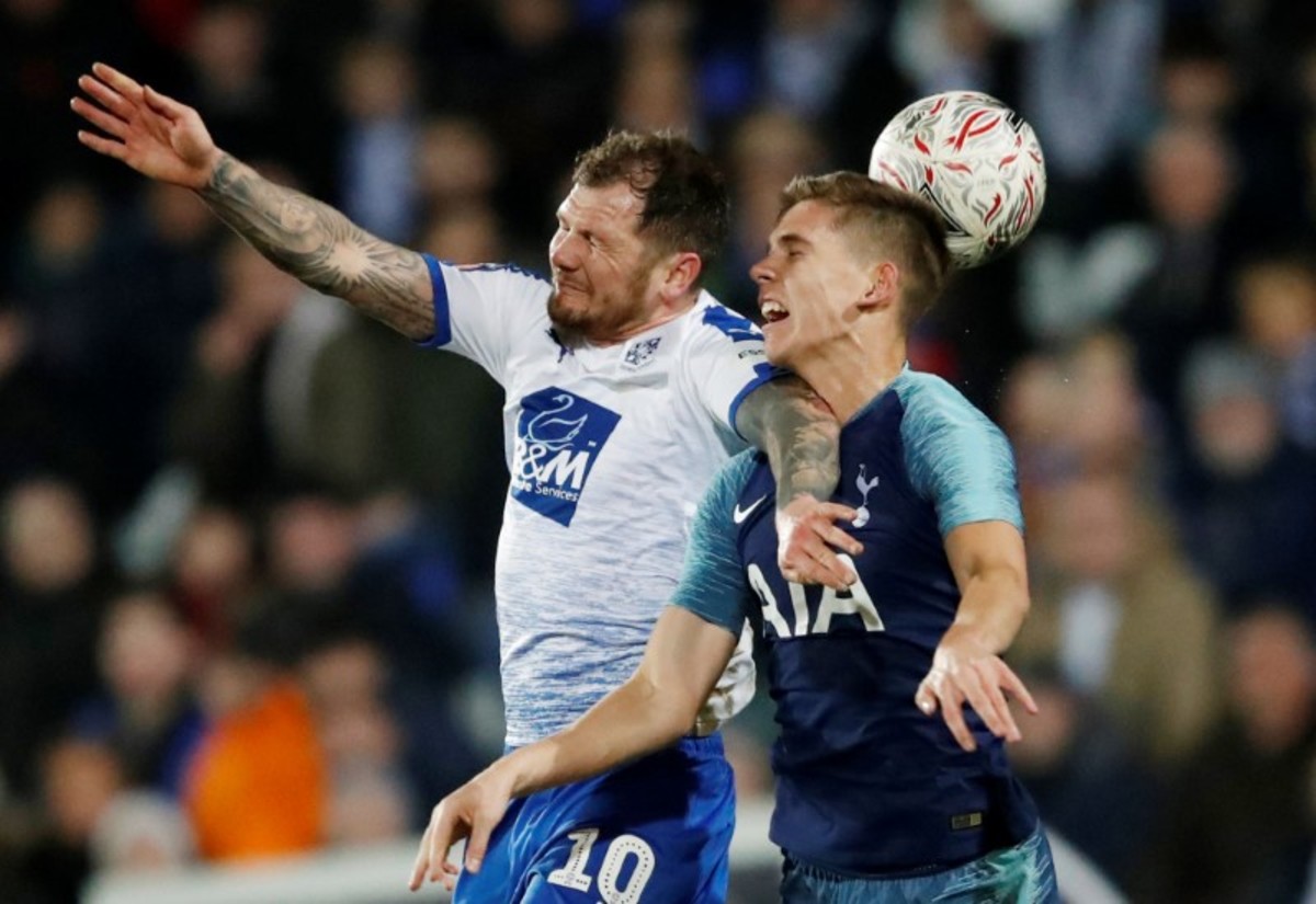 Soccer Football - FA Cup Third Round - Tranmere Rovers v Tottenham Hotspur - Prenton Park, Birkenhead, Britain - January 4, 2019 Tottenham's Son Heung-min scores their fourth goal Action Images via Reuters/Carl RecineSoccer Football - FA Cup Third Round - Tranmere Rovers v Tottenham Hotspur - Prenton Park, Birkenhead, Britain - January 4, 2019 Tottenham's Davinson Sanchez in action with Tranmere Rovers' James Norwood REUTERS/Andrew YatesSoccer Football - FA Cup Third Round - Tranmere Rovers v Tottenham Hotspur - Prenton Park, Birkenhead, Britain - January 4, 2019 Tottenham's Serge Aurier celebrates scoring their third goal Action Images via Reuters/Carl RecineSoccer Football - FA Cup Third Round - Tranmere Rovers v Tottenham Hotspur - Prenton Park, Birkenhead, Britain - January 4, 2019 Tottenham's Lucas Moura in action with Tranmere Rovers' Scott Davies Action Images via Reuters/Carl RecineSoccer Football - FA Cup Third Round - Tranmere Rovers v Tottenham Hotspur - Prenton Park, Birkenhead, Britain - January 4, 2019 Tottenham's Lucas Moura after sustaining an injury Action Images via Reuters/Carl RecineSoccer Football - FA Cup Third Round - Tranmere Rovers v Tottenham Hotspur - Prenton Park, Birkenhead, Britain - January 4, 2019 Tottenham's Dele Alli in action with Tranmere Rovers' Connor Jennings REUTERS/Andrew YatesSoccer Football - FA Cup Third Round - Tranmere Rovers v Tottenham Hotspur - Prenton Park, Birkenhead, Britain - January 4, 2019 Tottenham's Paulo Gazzaniga makes a save Action Images via Reuters/Carl RecineSoccer Football - FA Cup Third Round - Tranmere Rovers v Tottenham Hotspur - Prenton Park, Birkenhead, Britain - January 4, 2019 Tranmere Rovers' Harvey Gilmour in action with Tottenham's Fernando Llorente Action Images via Reuters/Carl RecineSoccer Football - FA Cup Third Round - Tranmere Rovers v Tottenham Hotspur - Prenton Park, Birkenhead, Britain - January 4, 2019 Tottenham's Kyle Walker-Peters in action with Tranmere Rovers' Jake Caprice and Jay Harris Action Images via Reuters/Carl RecineSoccer Football - FA Cup Third Round - Tranmere Rovers v Tottenham Hotspur - Prenton Park, Birkenhead, Britain - January 4, 2019 Tottenham's Son Heung-min in action with Tranmere Rovers' Emmanuel Monthe REUTERS/Andrew YatesSoccer Football - FA Cup Third Round - Tranmere Rovers v Tottenham Hotspur - Prenton Park, Birkenhead, Britain - January 4, 2019 Tottenham fan Action Images via Reuters/Carl RecineSoccer Football - FA Cup Third Round - Tranmere Rovers v Tottenham Hotspur - Prenton Park, Birkenhead, Britain - January 4, 2019 Tottenham manager Mauricio Pochettino on the bench before the match Action Images via Reuters/Carl RecineSoccer Football - FA Cup Third Round - Tranmere Rovers v Tottenham Hotspur - Prenton Park, Birkenhead, Britain - January 4, 2019 Tottenham's Dele Alli in action with Tranmere Rovers' James Norwood REUTERS/Andrew YatesSoccer Football - FA Cup Third Round - Tranmere Rovers v Tottenham Hotspur - Prenton Park, Birkenhead, Britain - January 4, 2019 Tottenham's Juan Foyth in action with Tranmere Rovers' James Norwood Action Images via Reuters/Carl RecineSoccer Football - FA Cup Third Round - Tranmere Rovers v Tottenham Hotspur - Prenton Park, Birkenhead, Britain - January 4, 2019 Tranmere Rovers' Jake Caprice in action with Tottenham's Kyle Walker-Peters Action Images via Reuters/Carl RecineSoccer Football - FA Cup Third Round - Tranmere Rovers v Tottenham Hotspur - Prenton Park, Birkenhead, Britain - January 4, 2019 Tottenham's Juan Foyth in action with Tranmere Rovers' James Norwood REUTERS/Andrew YatesSoccer Football - FA Cup Third Round - Tranmere Rovers v Tottenham Hotspur - Prenton Park, Birkenhead, Britain - January 4, 2019 Tranmere Rovers' Steve McNulty in action REUTERS/Andrew Yates