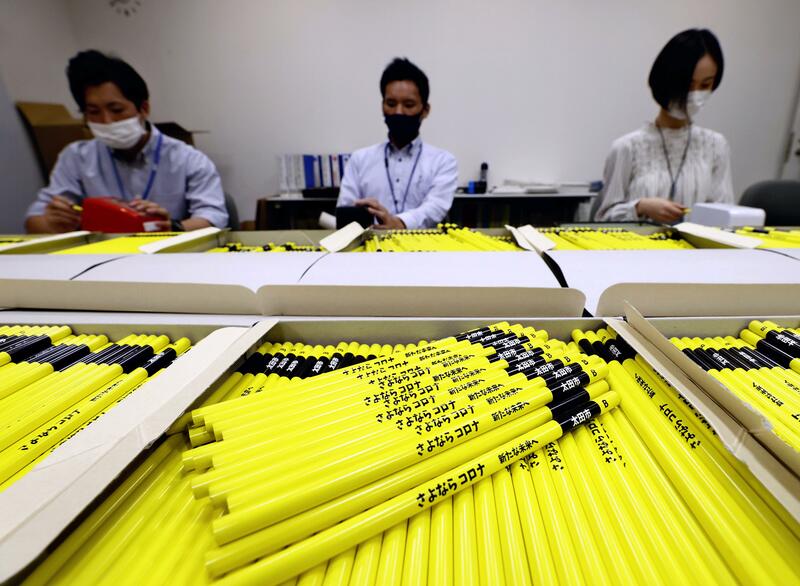 In Ota, Gunma Prefecture, city officials have been busy sharpening about 103,000 polling station pencils that bear the message, "Sayonara coronavirus -- Moving toward a new future."
