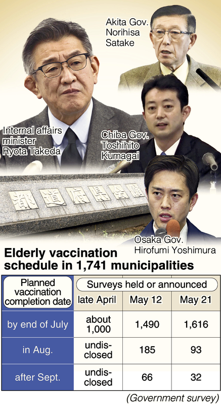 "Look, we [in the government] also want to wrap up [this stage of] vaccinations by the end of July," said Osaka Gov. Hirofumi Yoshimura. "We just have to keep plowing ahead and do what we can."