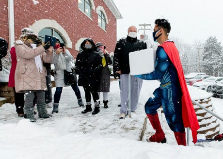 “You don’t want to get excited and get zero,” Amin says. But when the vaccine does arrive, Amin says he has to be quick on his feet, securing a location for a clinic. But despite the stress of getting a clinic together, Amin manages to bring a little levity to vaccine distribution — he’ll arrive dressed in a superhero costume, complete with red cape.