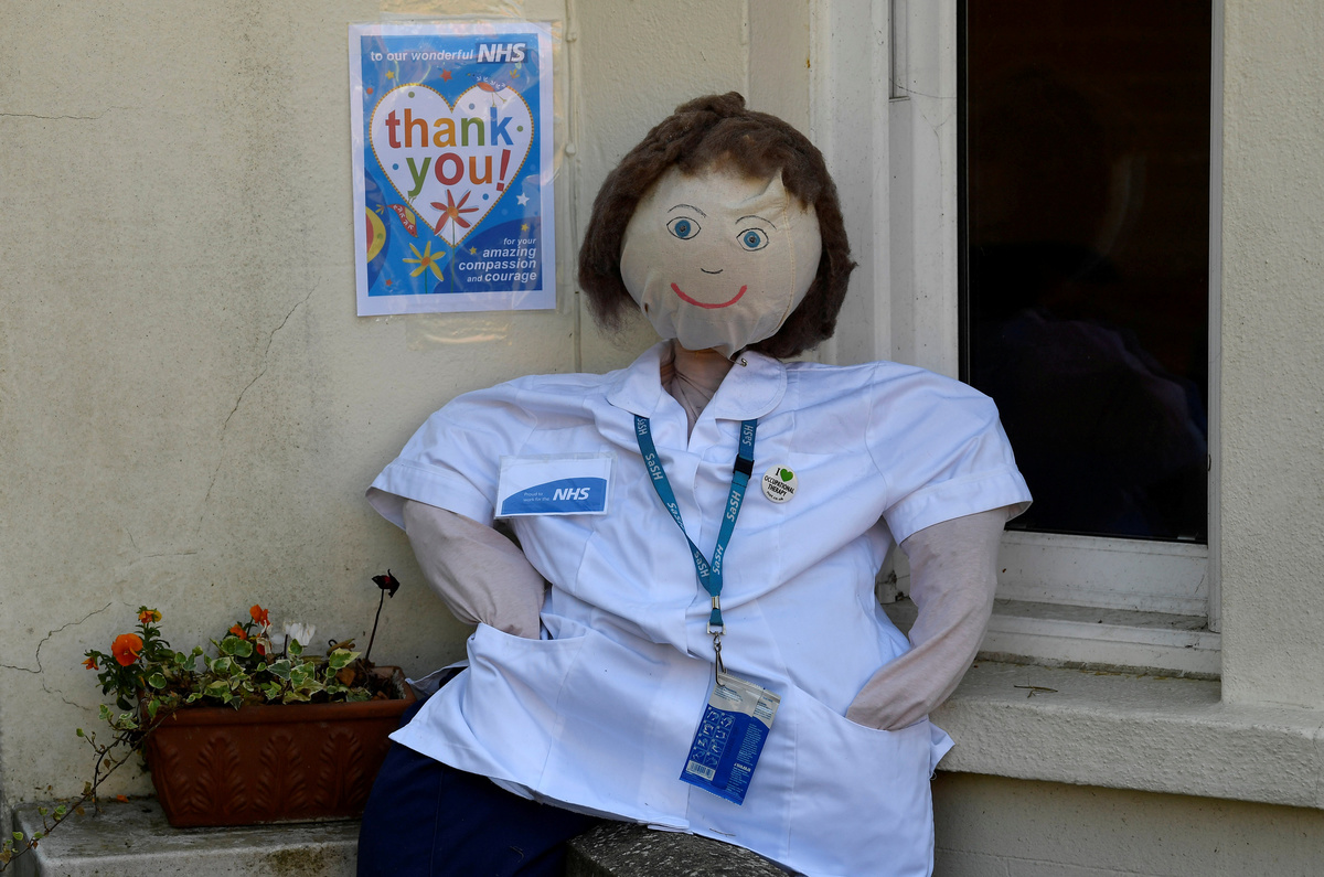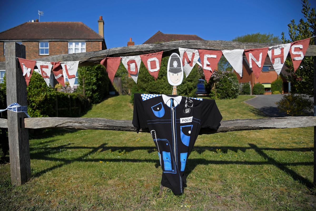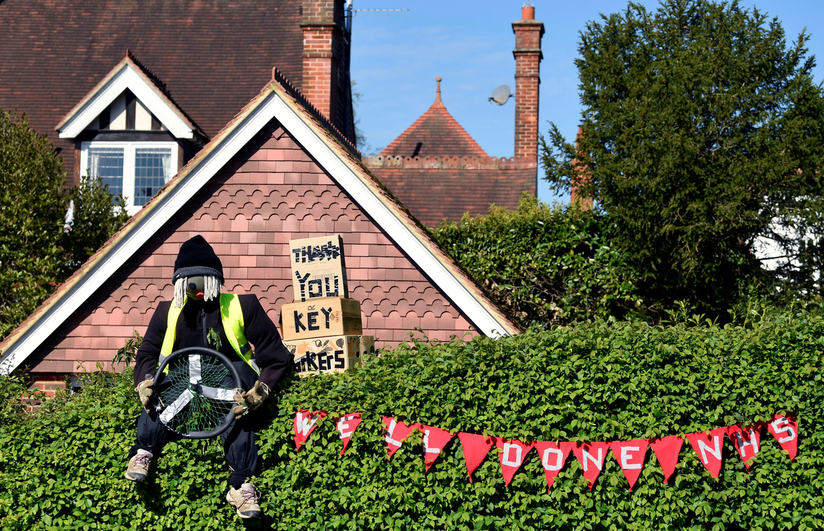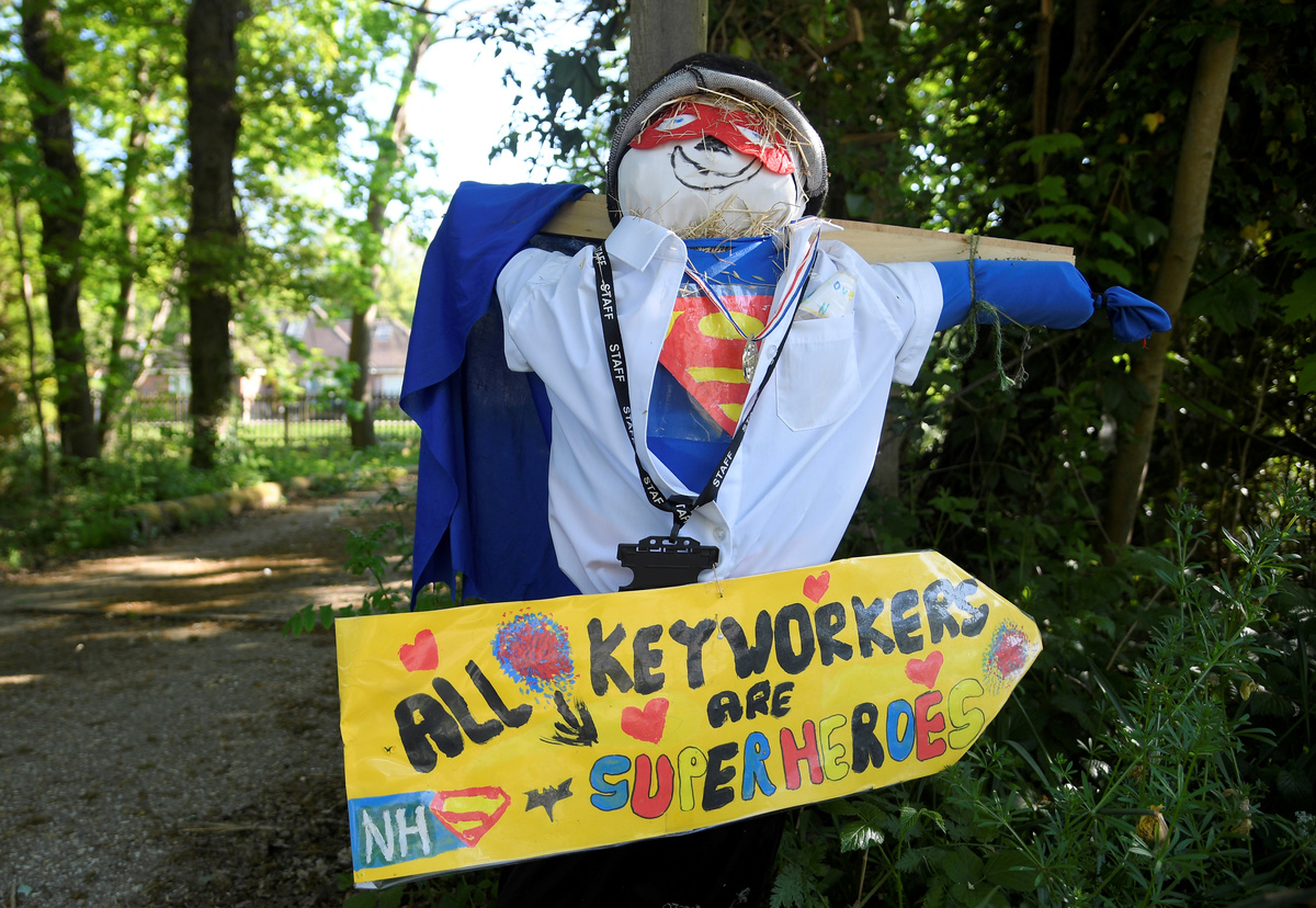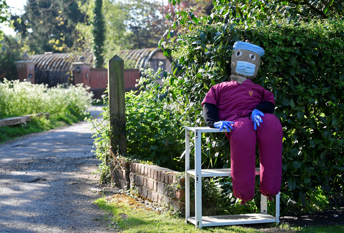 The daily lockdown walk has been brightened by the addition of scarecrows dressed as key workers in a village in southern England, as the community pays tribute to doctors, nurses, shop assistants and waste collectors in its own quirky way.