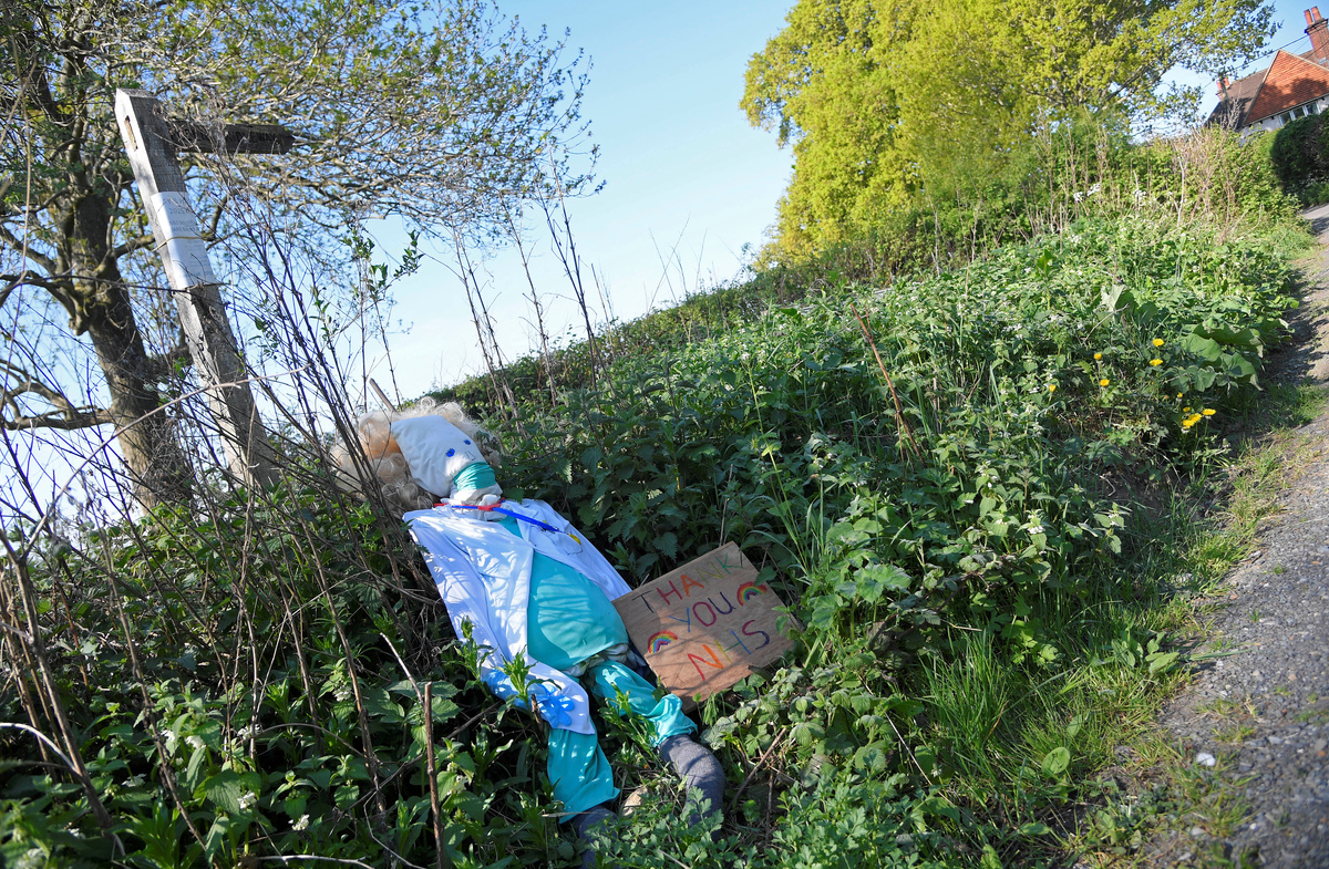 Many of the unsung heroes of the coronavirus pandemic such as policeman and postmen, farmers, rubbish collectors and supermarket workers, are represented by the scarecrows, as well as doctors and nurses.