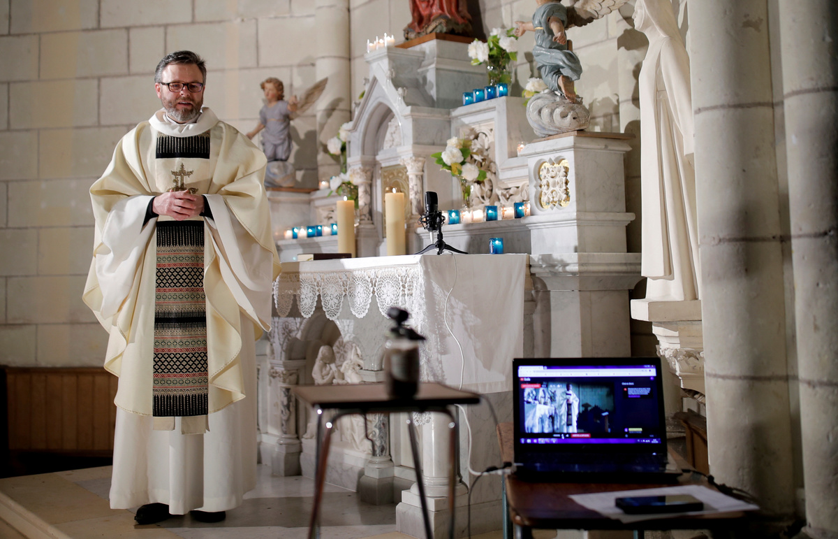 The virus outbreak and government restrictions on all gatherings, intended to curb the spread of the virus, have forced many people in France and around the world to innovate, including the Catholic church in Carquefou, in northwest France.