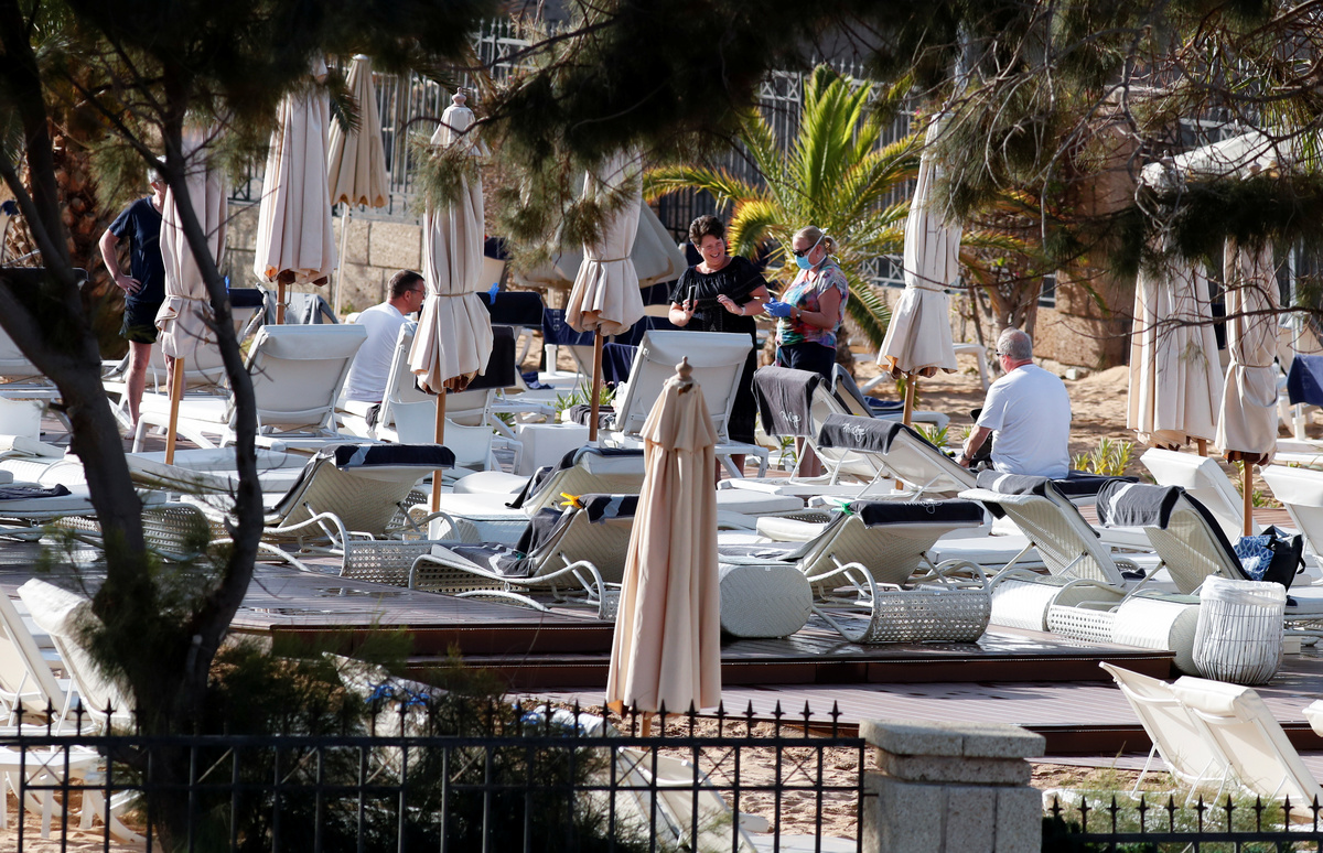Reuters TV footage showed a group of British tourists getting off a coach that had taken them from the hotel to the airport on Sunday evening wearing masks.