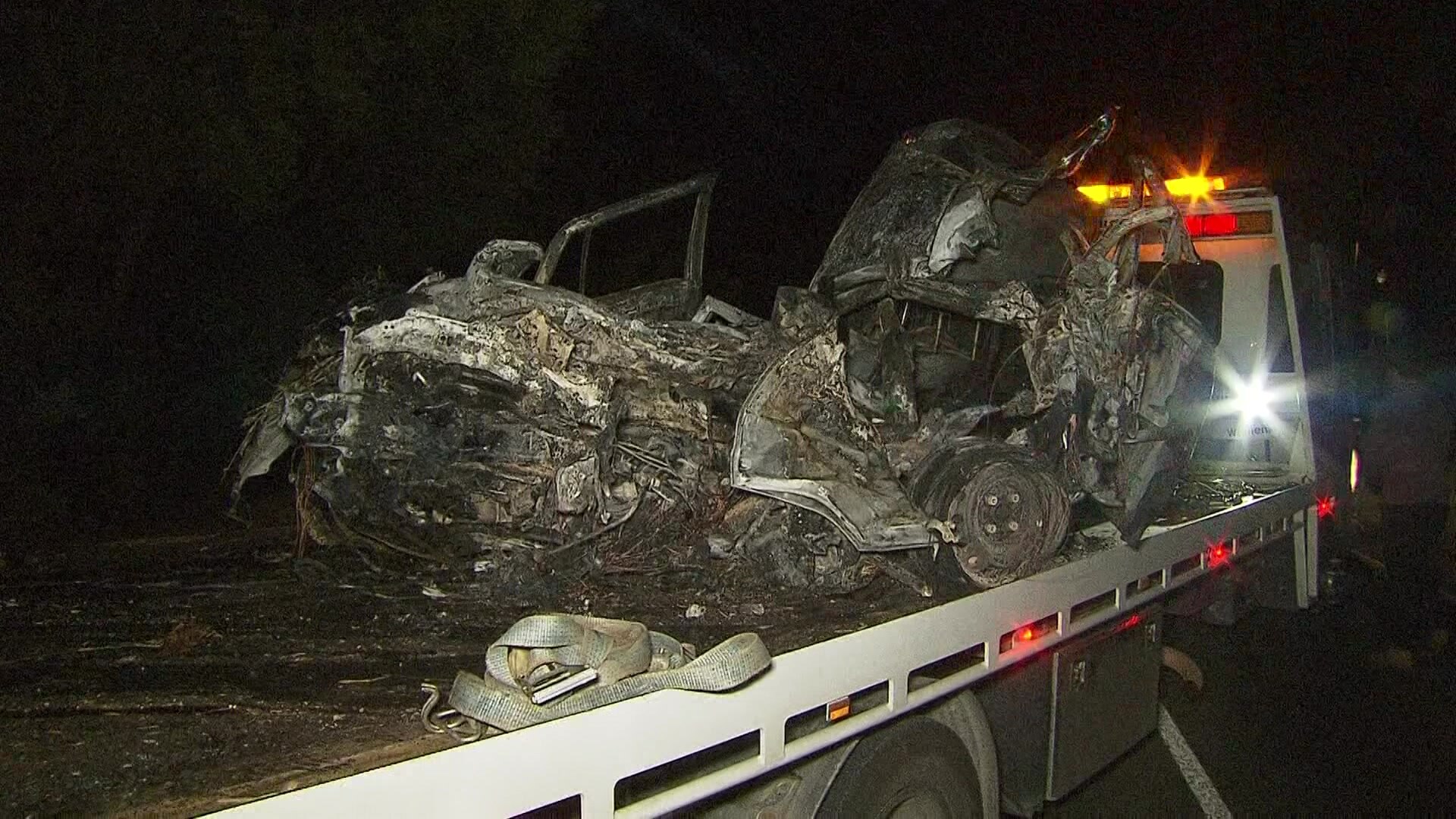 SA Police said they were called to Tatachilla Road, Tatachilla, about 7:15pm on Saturday, after a Toyota sedan crashed into a tree and burst into flames.