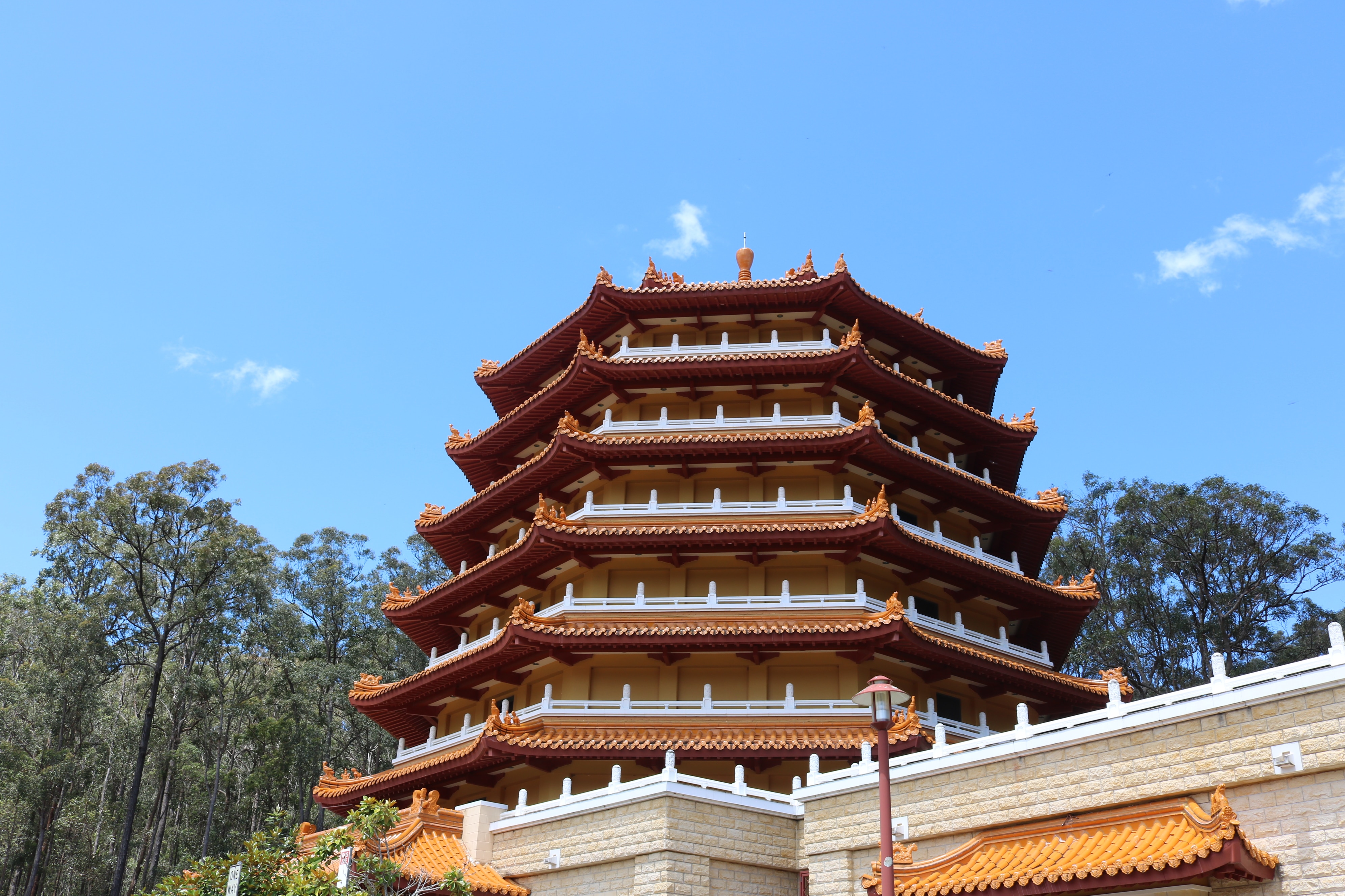 The sprawling, golden Fo Guang Shan Chung Tian Temple in Priestdale is nestled in thick bushland, creating an oasis of calm in the city.