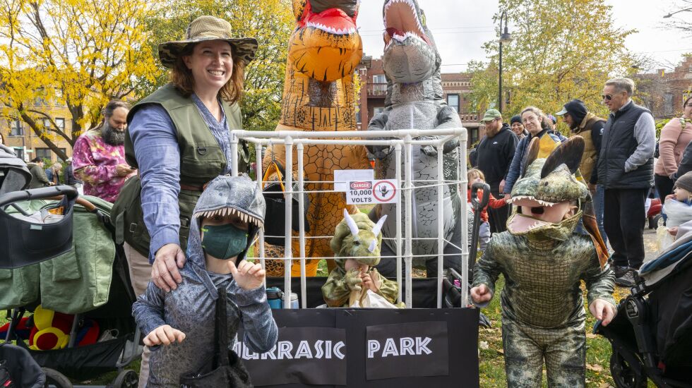 Erin Jimenez attended the fest with her husband and their four children, donning elaborate costumes — complete with a wagon-turned-cage for the littlest of the family of dinosaurs — which she said has become a tradition.
