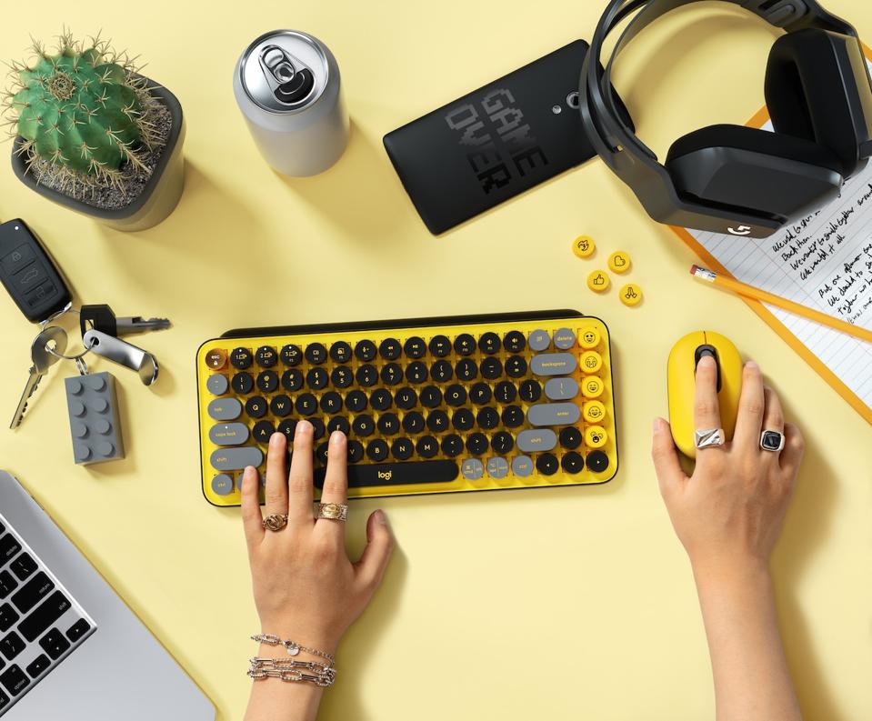 The three beautiful colorways Logitech has developed consist of Daydream – a delightful confection of mint, yellow and a restful lavender shade; Heartbreaker – a variation on a theme of rose pink and red that has a red velvet feel about it; and Blast – a striking combination of black and vibrant yellow like a JCB excavator. All three designs are gorgeous to look at and each has a matching POP mouse.