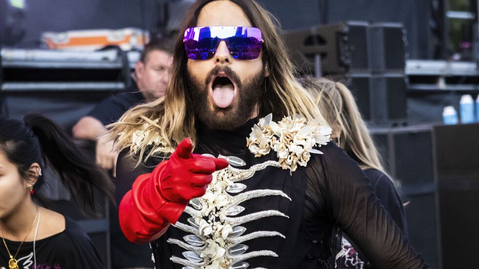 But late Friday, the festival turned up the heat with actor Jared Leto bungee jumping off the massive rigging above the Bud Light stage to join his bandmates on the stage below, and Kendrick Lamar playing the night’s closing set to an overflow crowd.