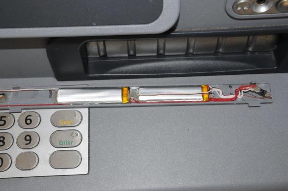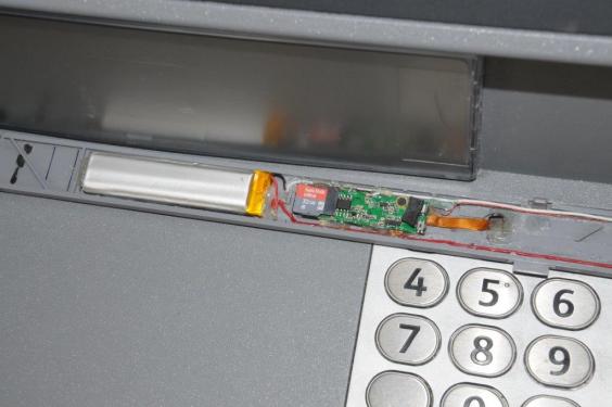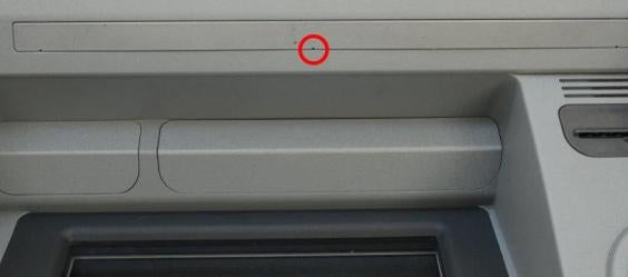 Hidden within a false cover on the machine, the pinhead-sized camera enables fraudsters to film people entering their pin numbers.