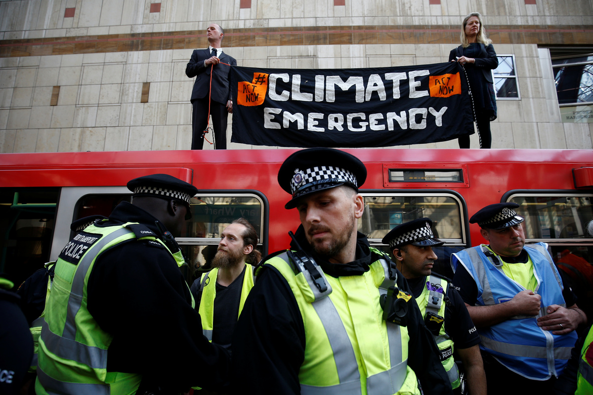 The group advocates non-violent civil disobedience to force governments to reduce carbon emissions and avert what it says is a global climate crisis that will bring starvation, floods, wildfires and social collapse.