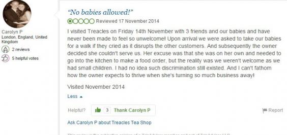 "I won't be visiting your establishment and neither will my family, circle of friends or their children...and we all love tea and cake! Best of luck!!"