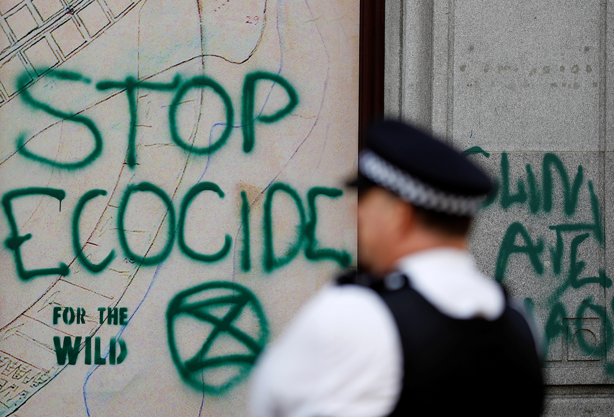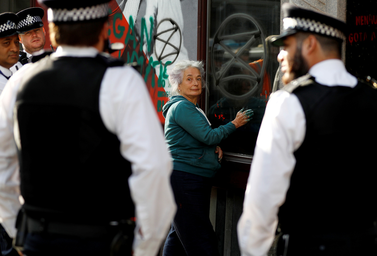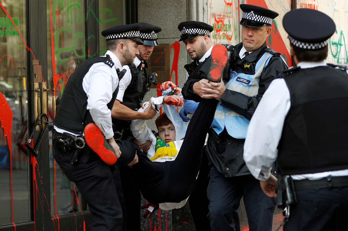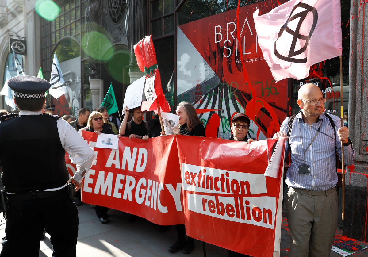 The Brazilian embassy in London said in response to Extinction Rebellion's actions that it welcomed anyone wishing to establish a dialogue about Brazil's public policies, but the right to vandalize property did not exist in any country.