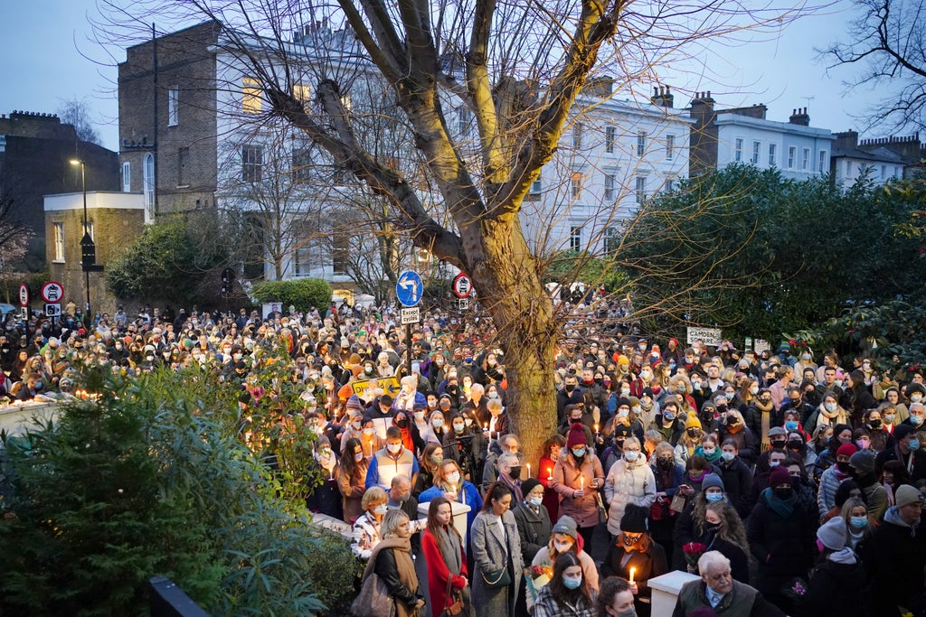 People held candles and stood in silent tribute outside the London Irish Centre in memory of Ashling Murphy