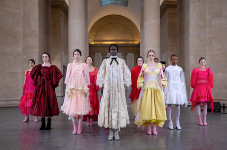 Bora Aksu opted for a different tact, though no less appealing as we sat watching in our tracksuits from behind screens. The Turkish-born designer live-streamed his runway from an empty Tate Britain, whose neo-classical architecture provided quite the backdrop for a French Revolution-themed collection.