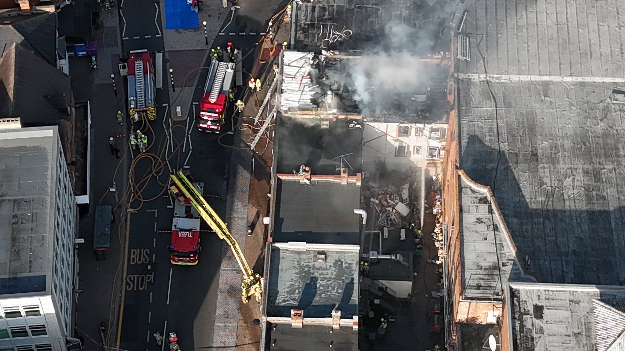 Station commander Tony Perks, who was at the scene, said: "Firefighters have worked extremely hard to prevent the fire from spreading significantly to adjoining buildings, including a cinema, resulting in very limited damage to those buildings.