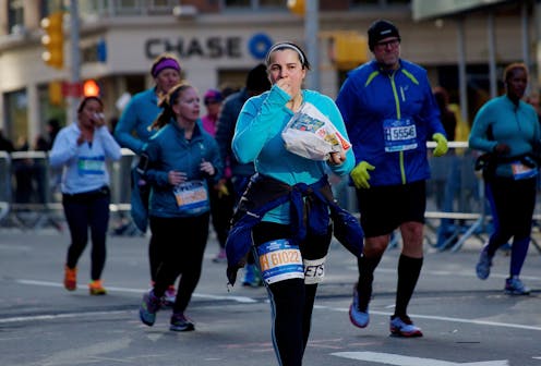 Your body uses carbohydrates to fuel high-intensity exercise, including marathons. While the body stores some carbohydrate (in the form of glycogen) in the muscles and liver, unfortunately, it can’t store large amounts. So when we don’t have enough carbohydrate available to use as fuel during exercise, energy levels drop and we start to fatigue. During a marathon, this fatigue might take the form of heavy legs, or “hitting the wall”. It can also lead to low blood sugar, leaving you feeling light-headed and weak.