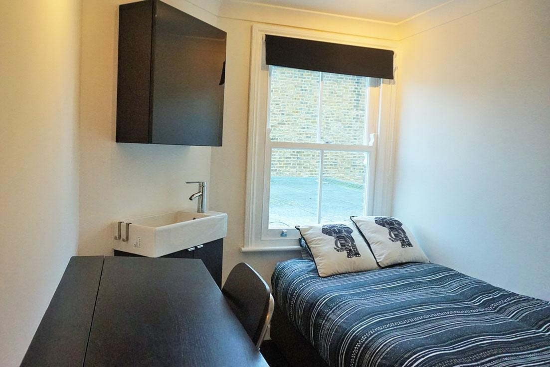 According to the advert on online estate agents Zoopla, the ‘flat’ is “situated on the 1st floor of a handsome period building, this well presented studio flat provides bright accommodation that includes a sleeping area with compact kitchenette (mini fridge & microwave included) plus a separate wet room with shower & W.C.”