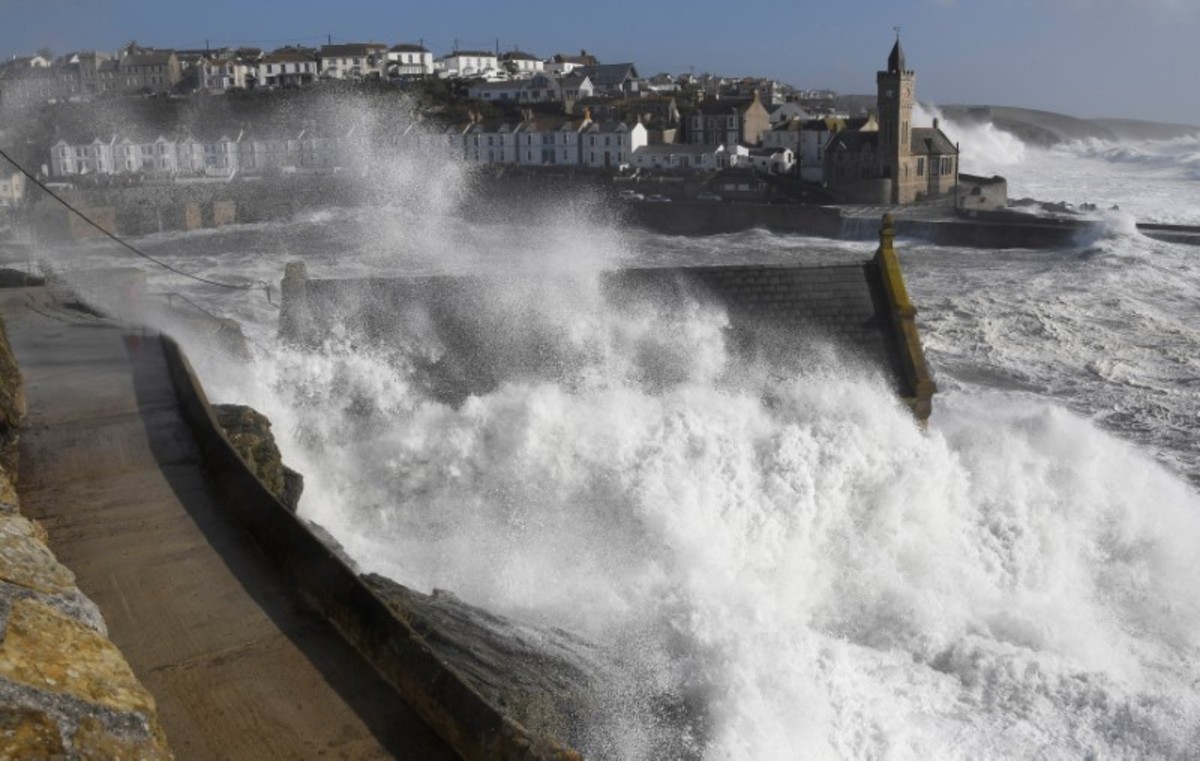 Large waves crash along sea defences and the harbour as storm Ophelia approaches Porthleven in Cornwall, south west Britain, October 16, 2017. REUTERS/Toby Melville