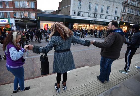 At the protest in Hackney, demonstrators of various ages huddled around the station entrance before linking hands in a wide circle nearby in solidarity for those killed.