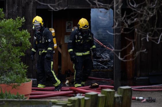 About three-quarters of the cafe and shop and half of its roof were ablaze. Pictures from the scene showed firefighters hosing down roaring flames as smoke billowed from the building.